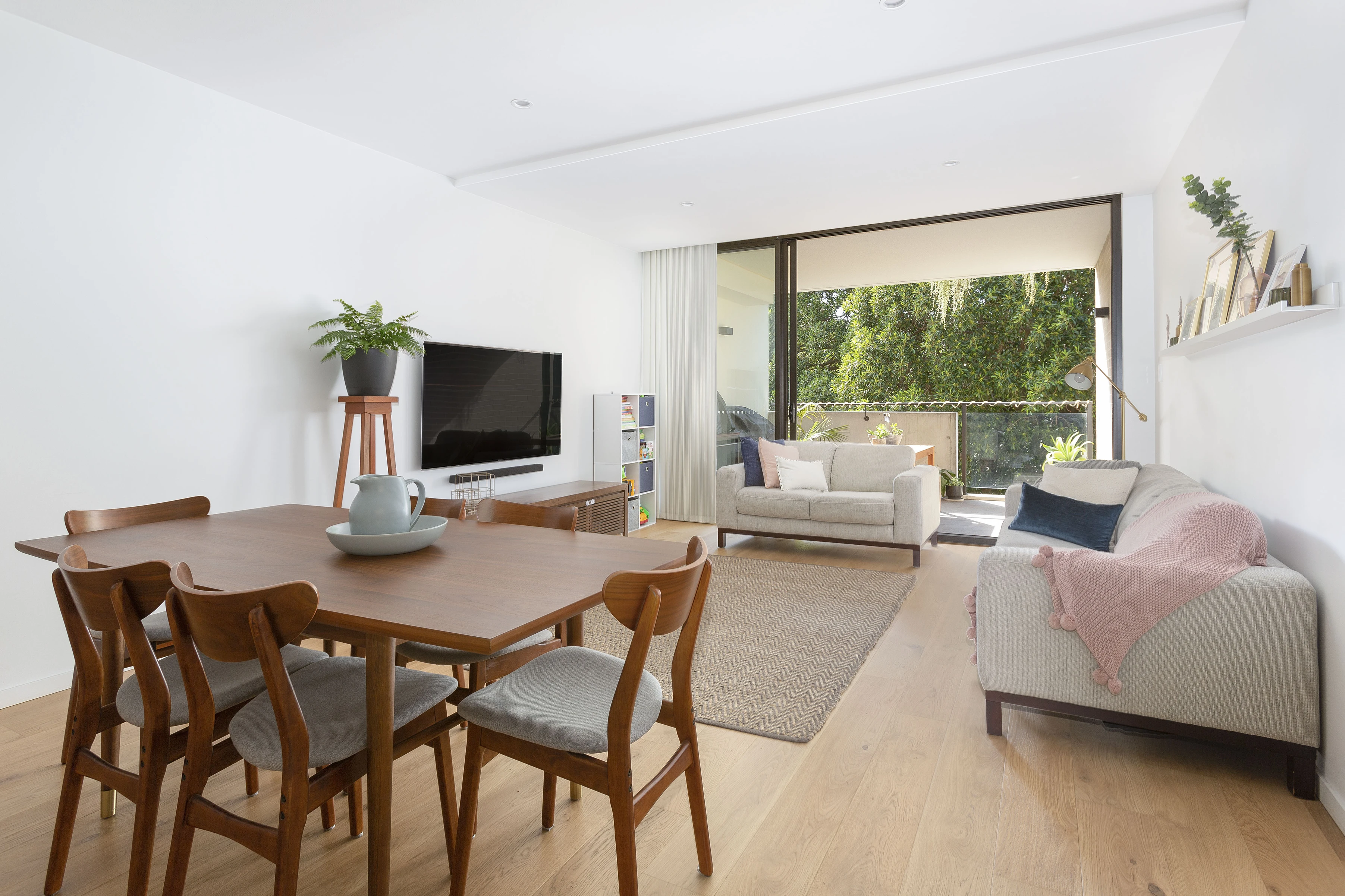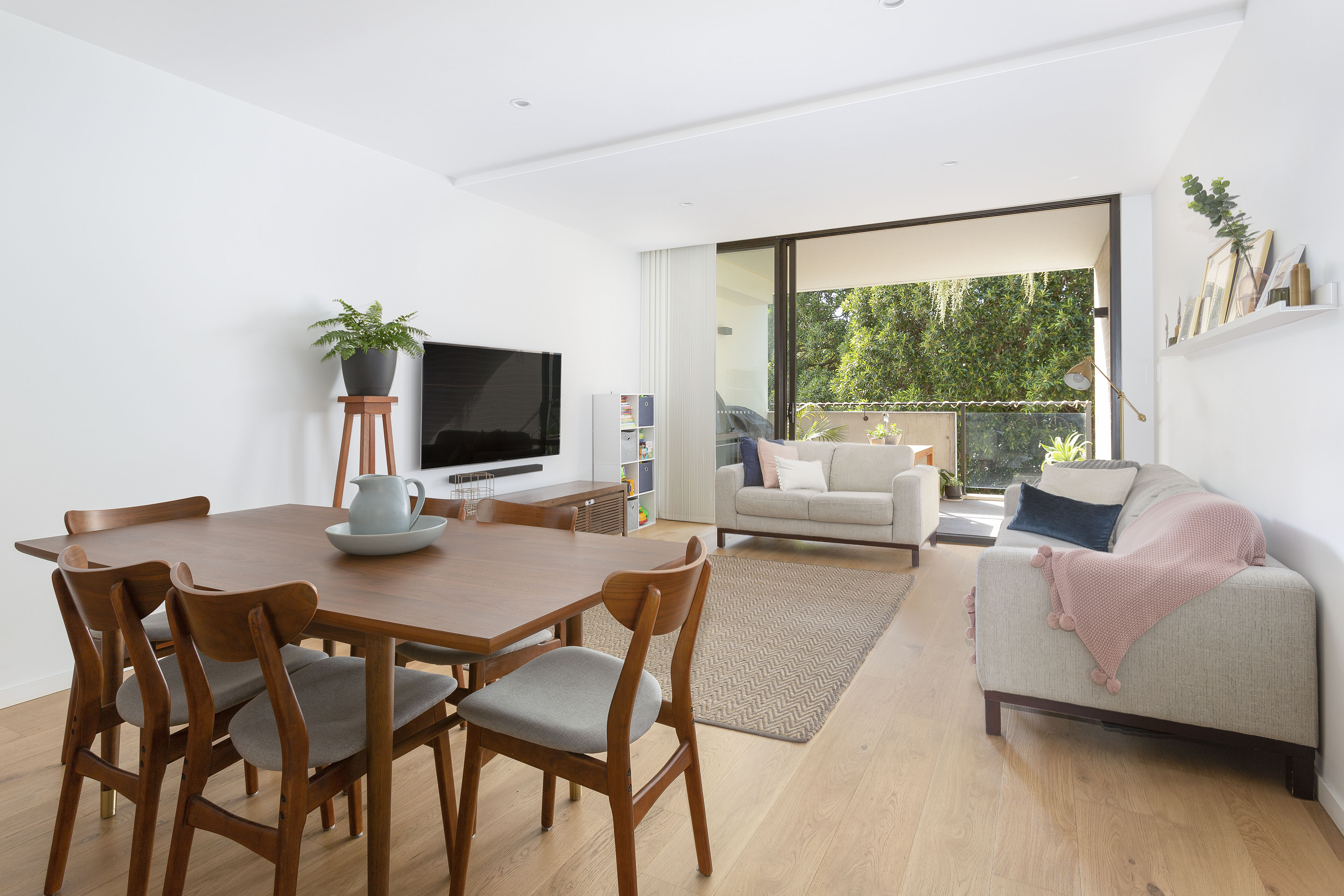 - Wall-to-wall sliding doors, natural light