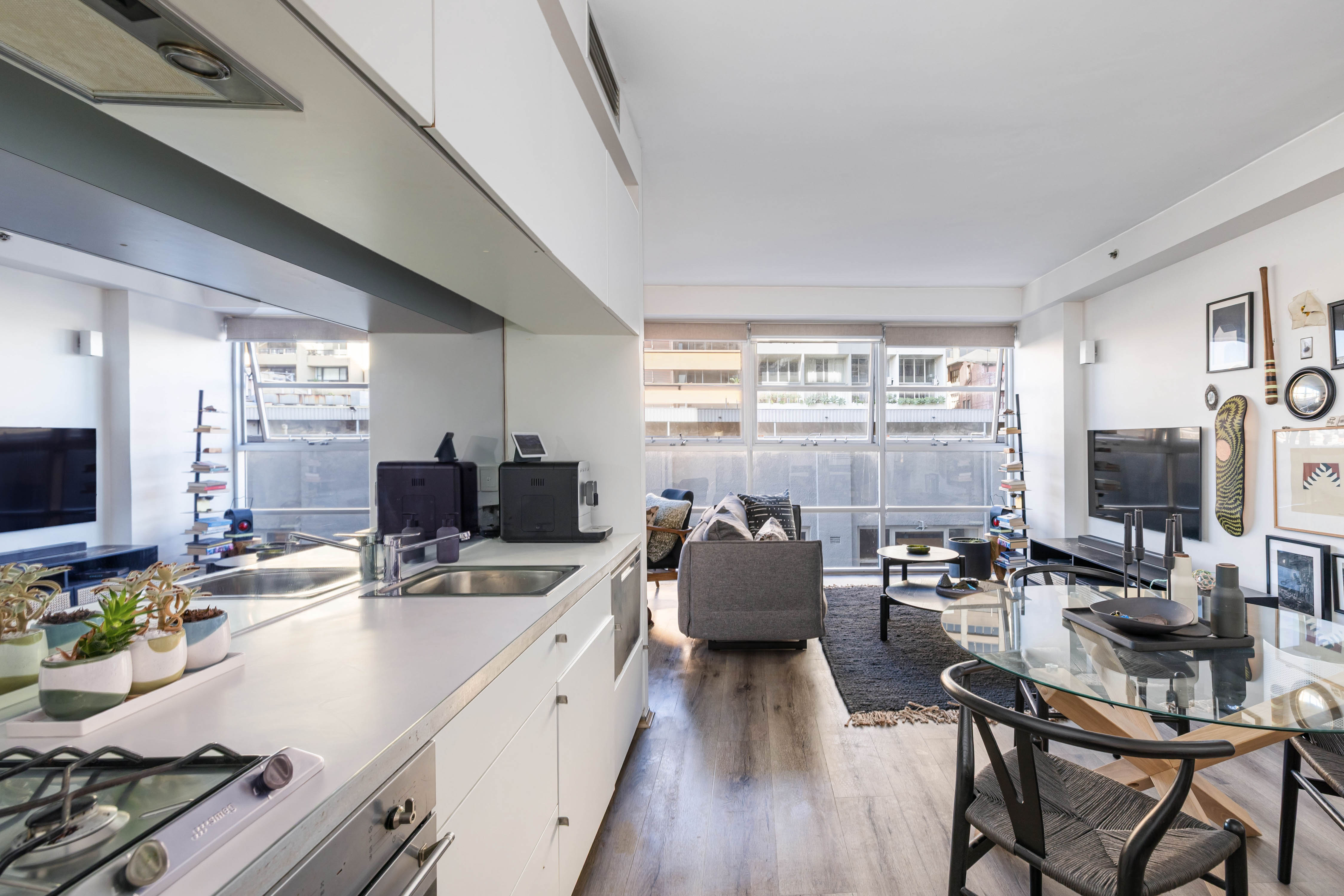 This elegant open-plan residence has wall-to-wall windows which bring a cool warehouse ambience. In the ‘Lumina’ building, access hotel-style commons and resort-like facilities plus a low-upkeep, lock-and-leave lifestyle on the edge of Sydney’s CBD. Streamlined modern finishes and urban outlooks complete the impressive entry-level package.