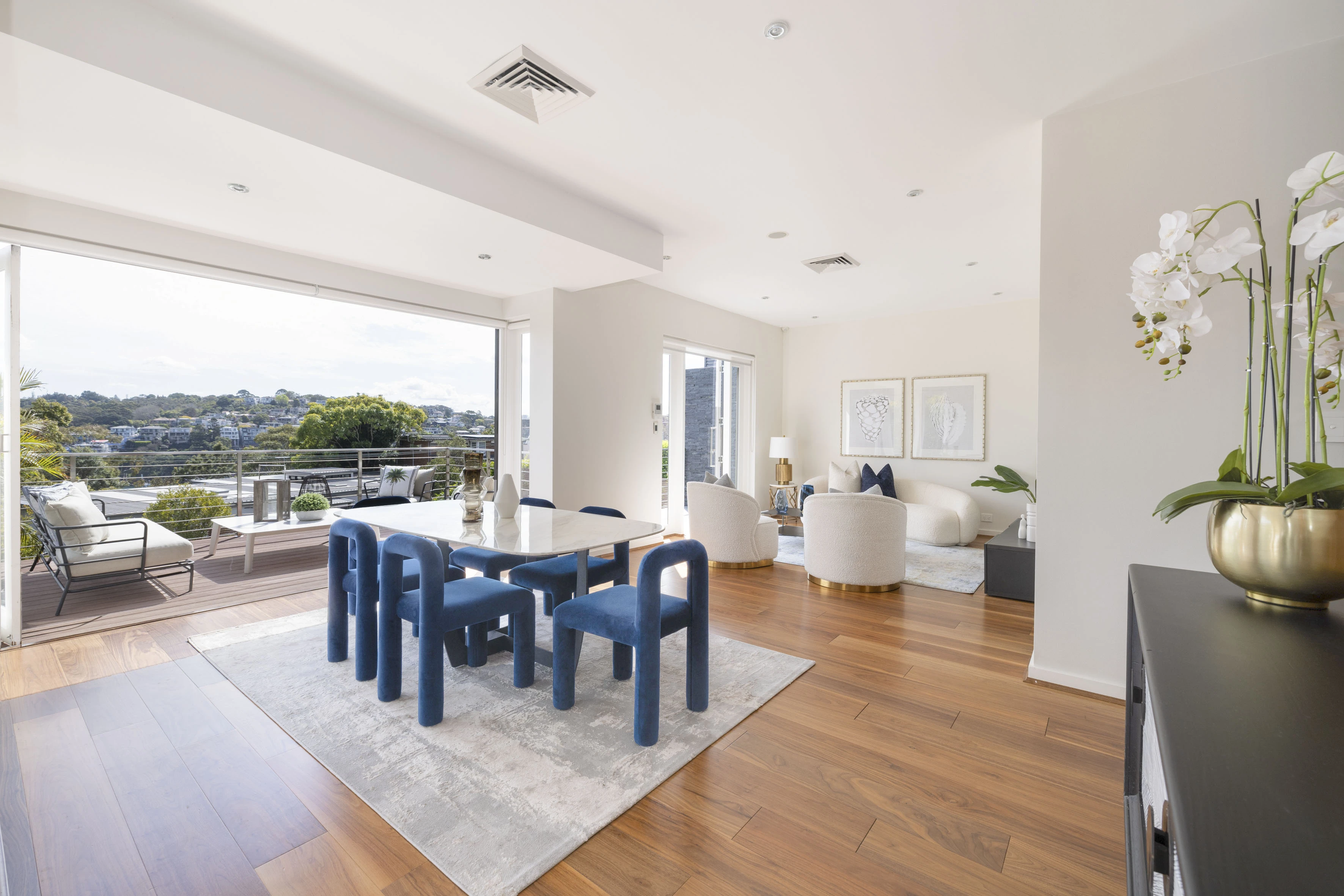 - Open plan, flowing to an all-seasons deck