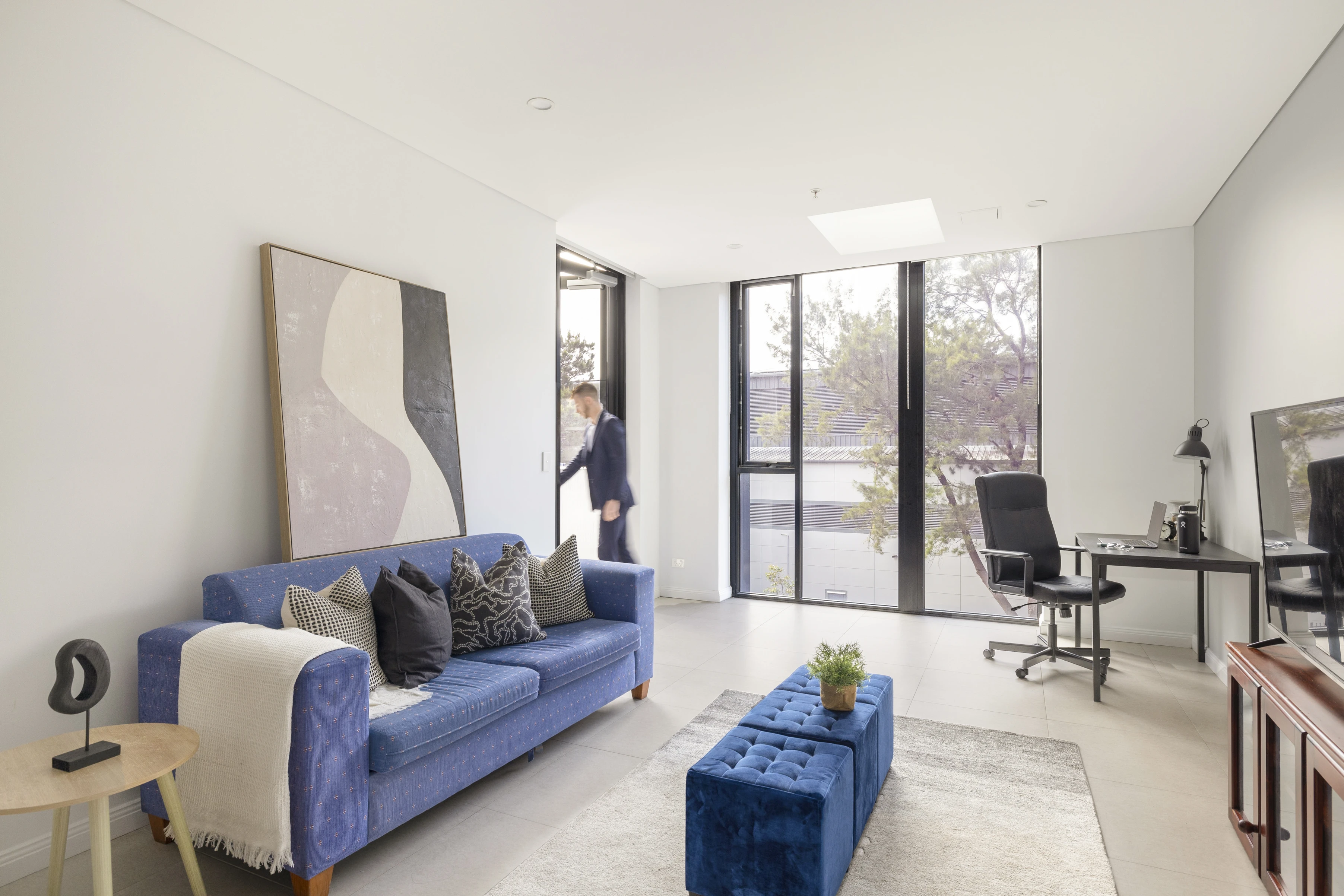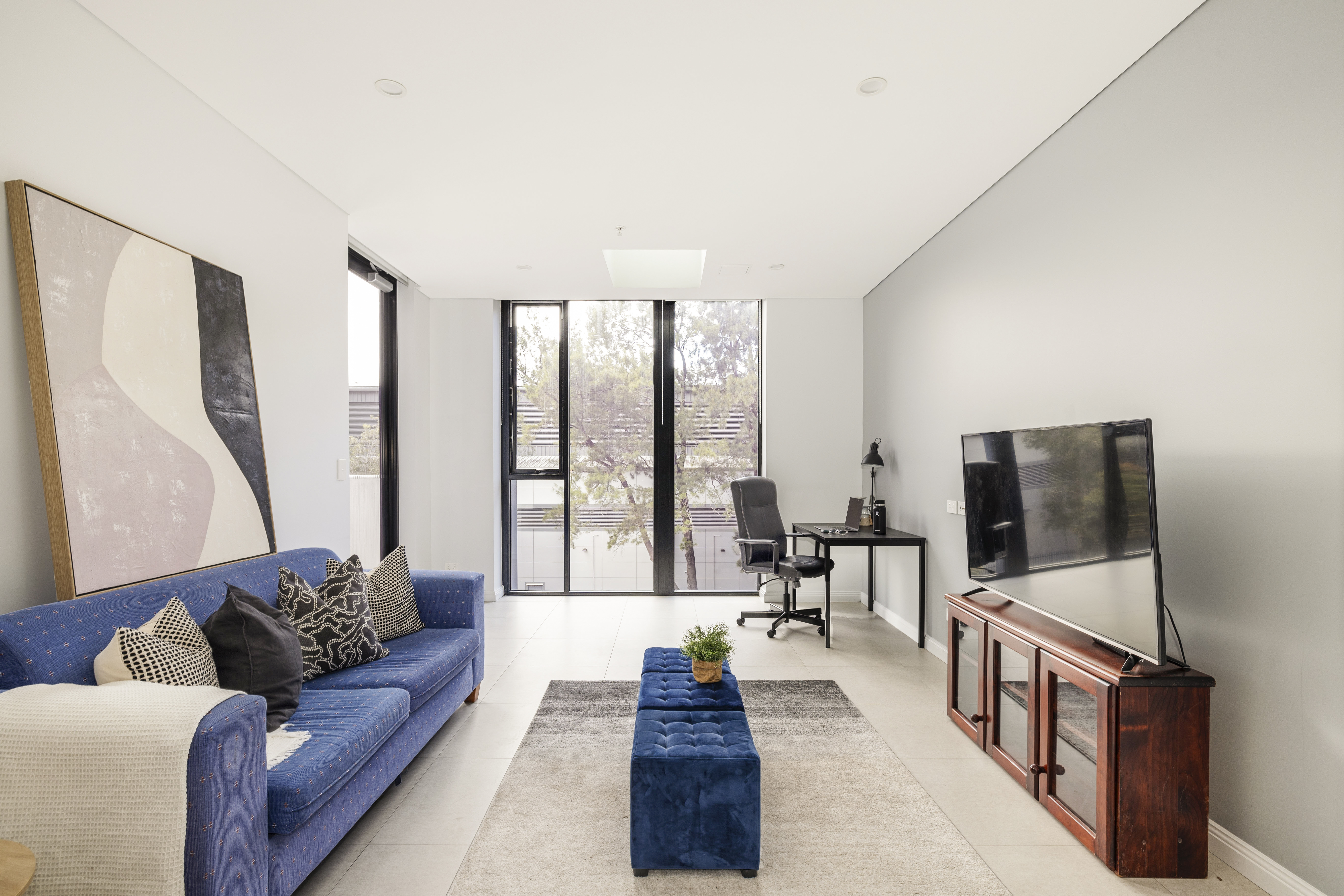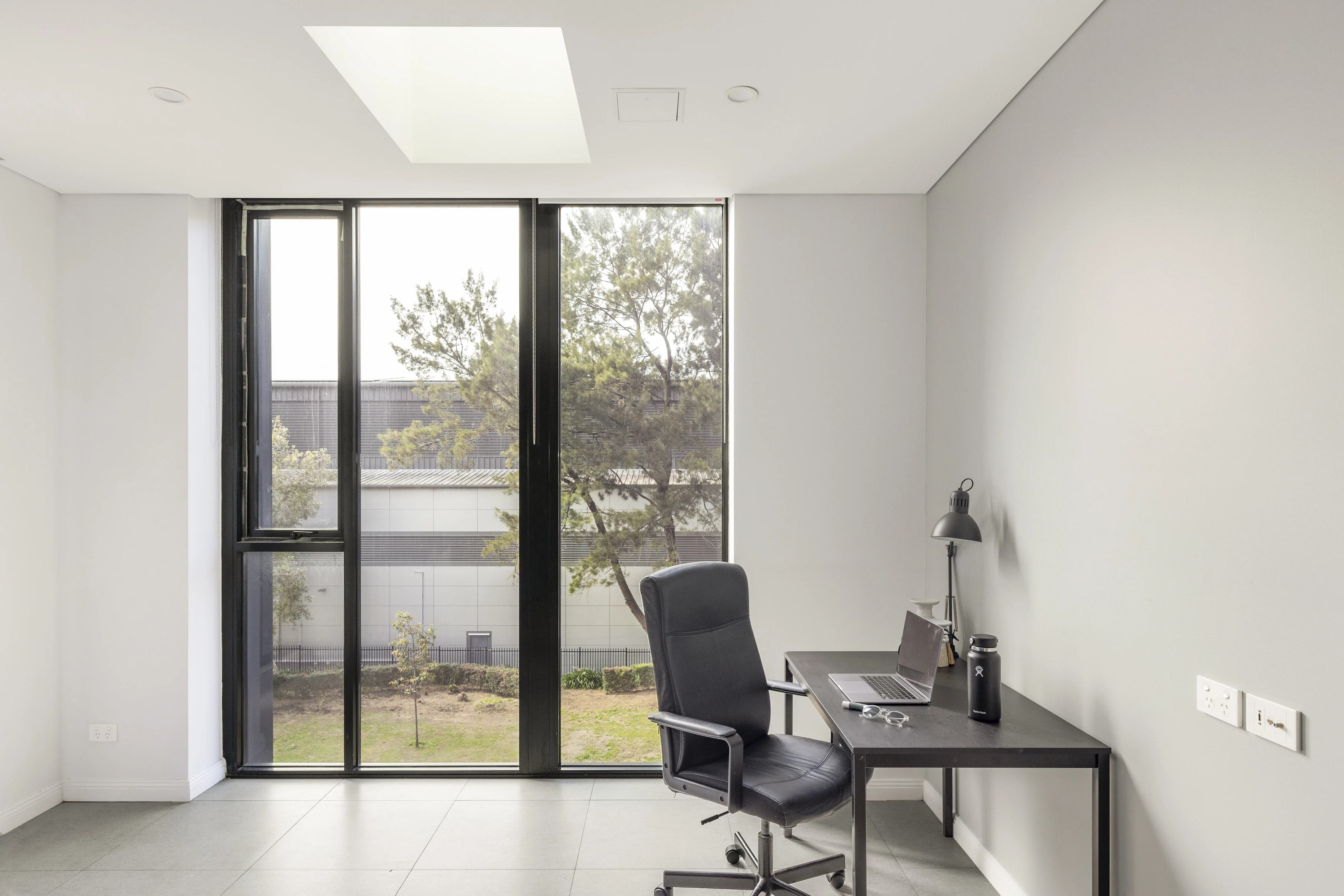 - Light from floor-to-ceiling glass & skylight