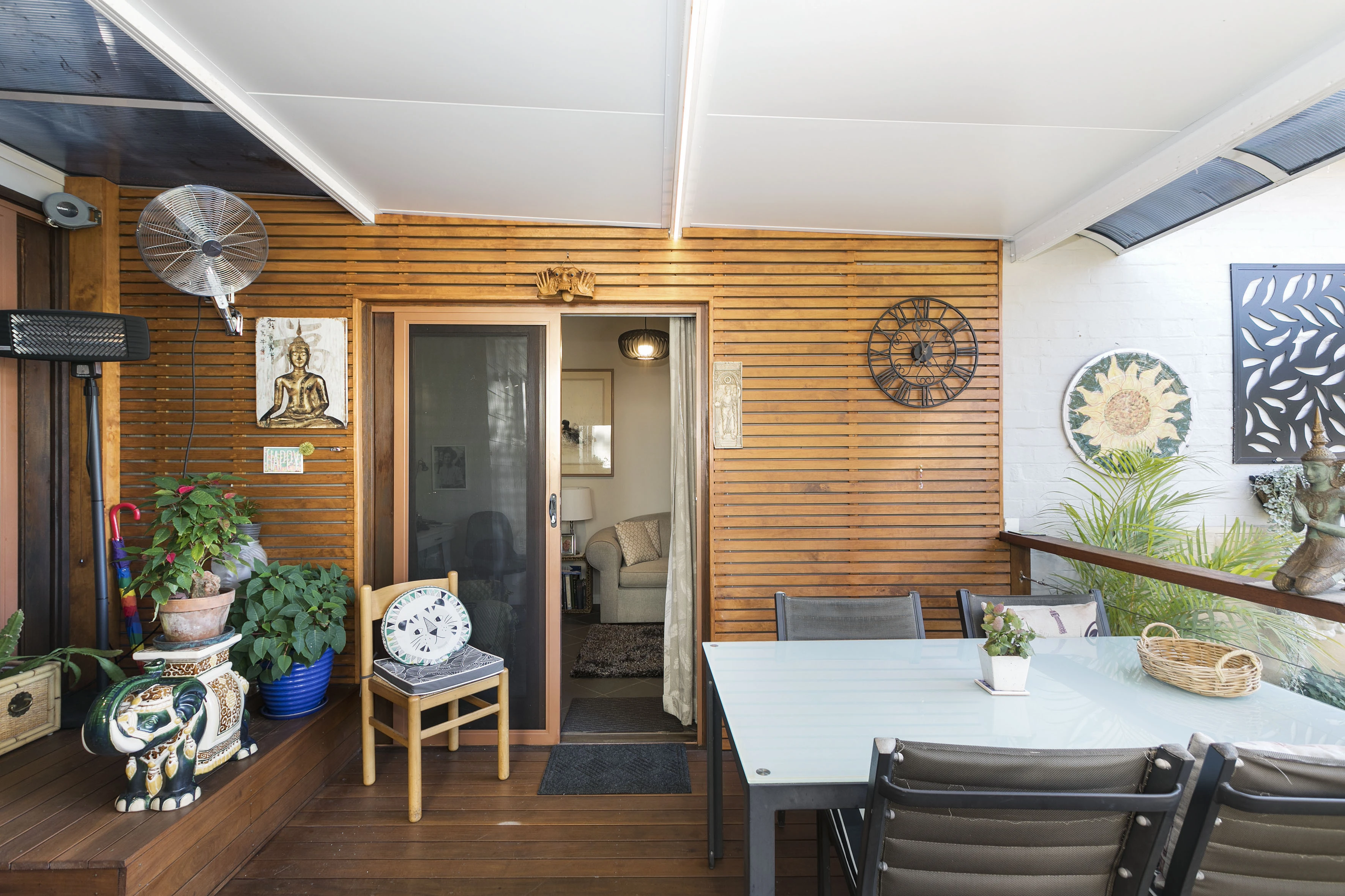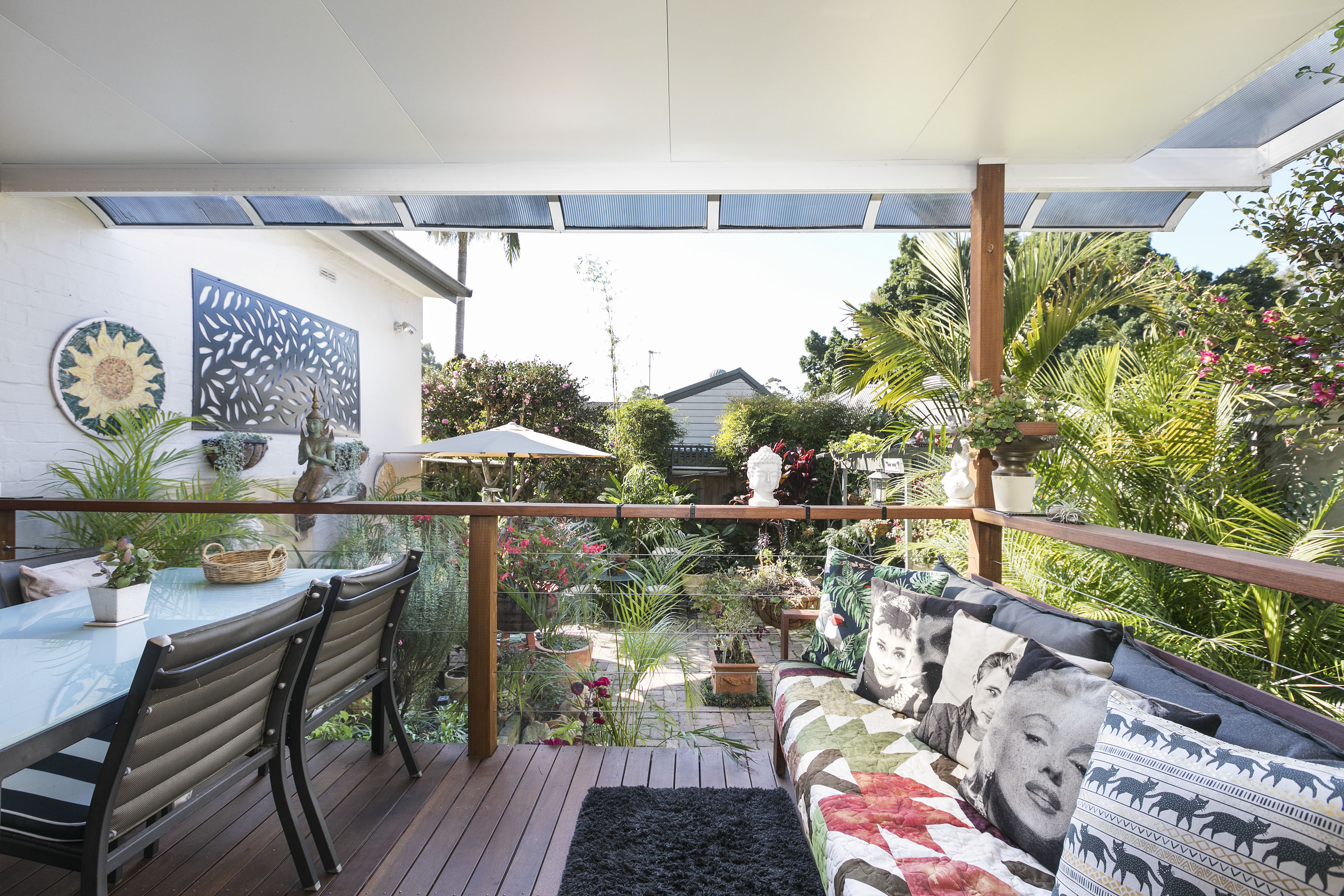 - Covered space overlooking lush gardens
