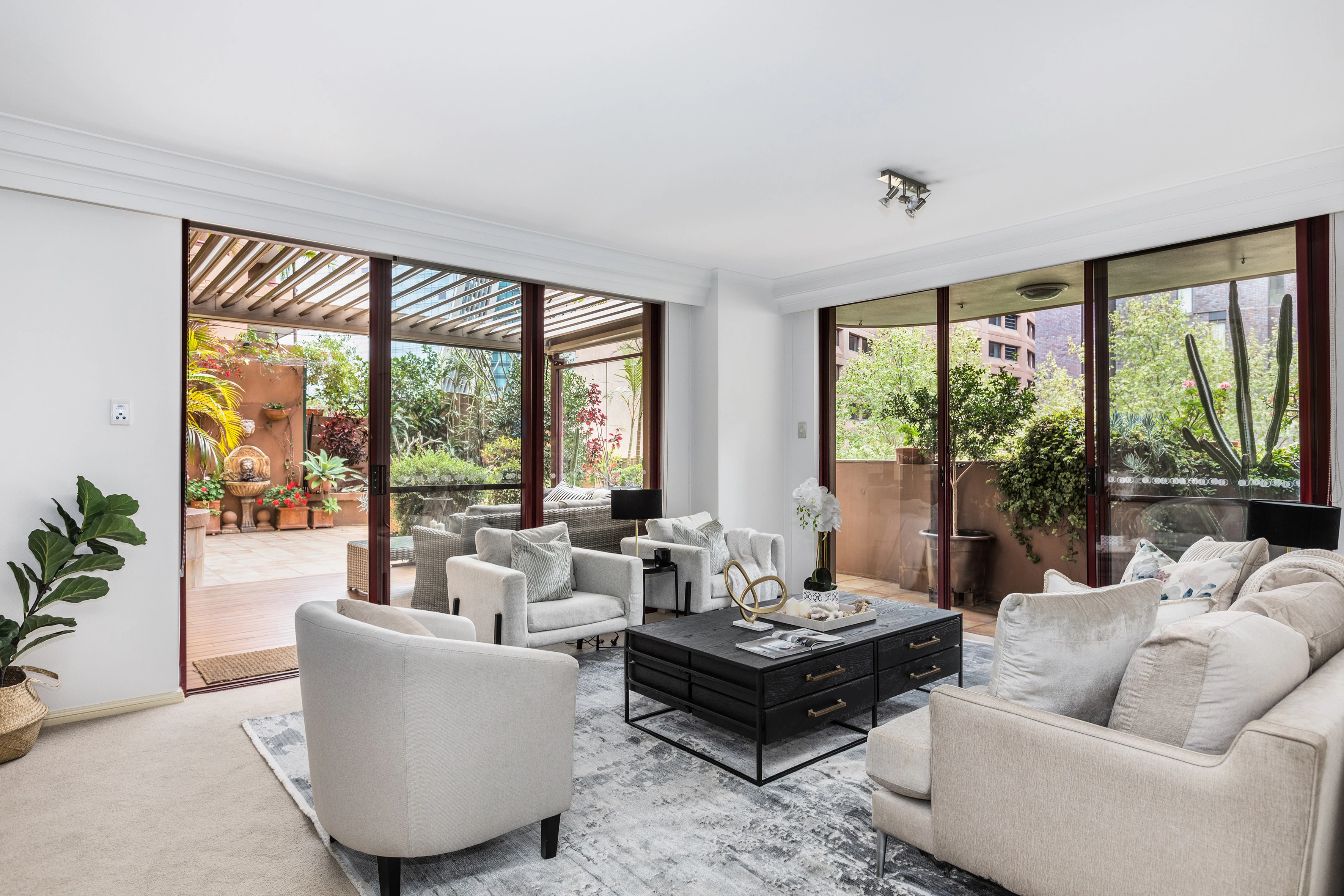Hard to believe this house-like apartment is in the city's heart with masses of indoor/outdoor living over one sprawling level. The alfresco terrace and gardens are on a one-of-a-kind scale, as is the oversized lock-up garage, double parking and storage (for a huge 303sqm on title). In Millennium Towers, metres to the harbour, resort-like facilities include indoor pool, gym, sauna and 24-hour concierge.