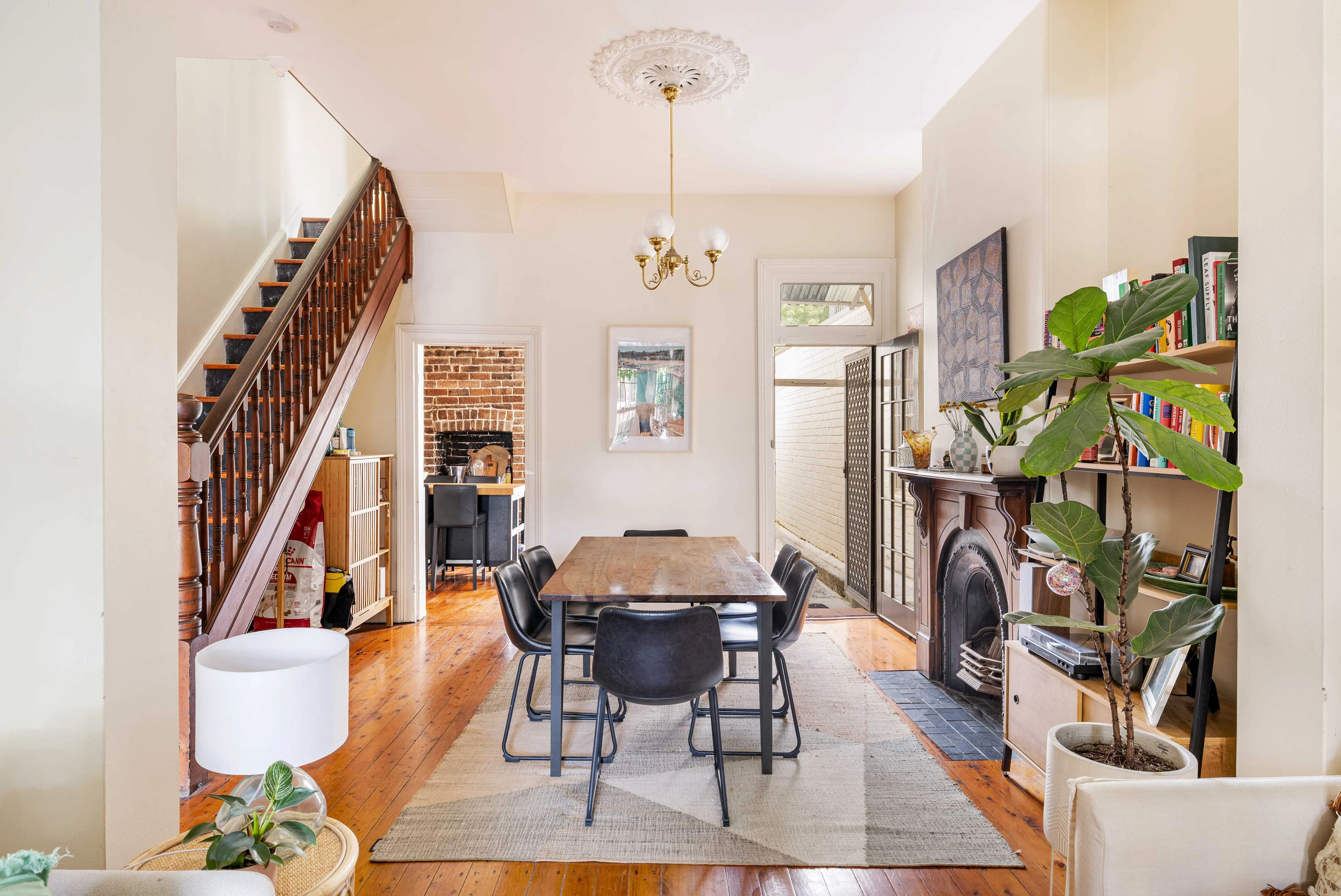 - High ceilings and polished timber floors