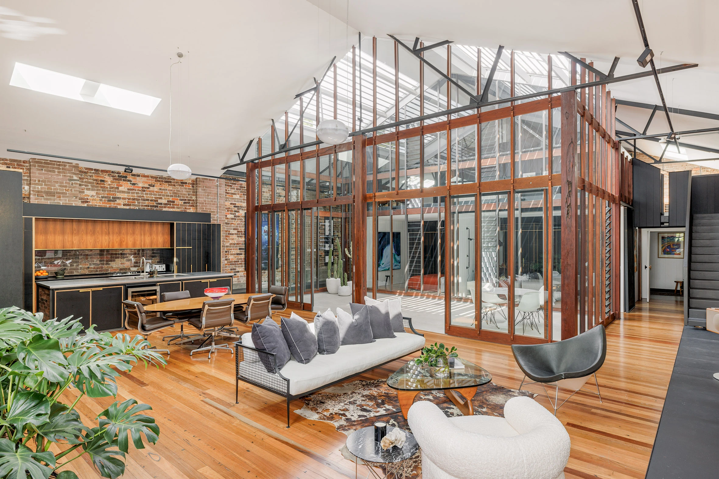 This former industrial building has been dramatically recast as a luxurious, architect-designed residence, with all rooms centred around a double-height, open-air internal atrium. With 430sqm of space on title, the design plays with scale, materiality, outdoor links and its own industrial spirit for a home unlike any other.