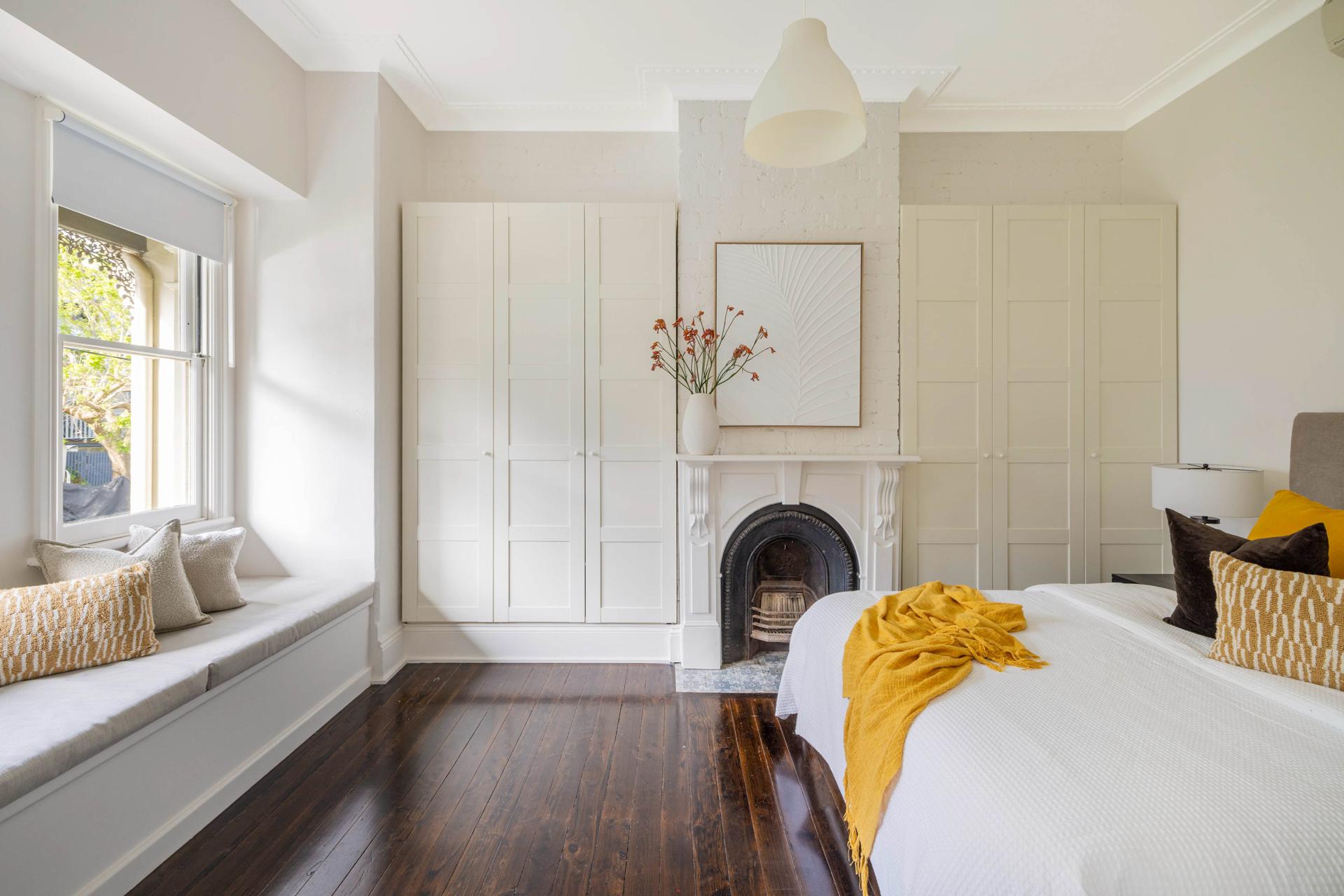 - Built-in shelving, window seats and robes