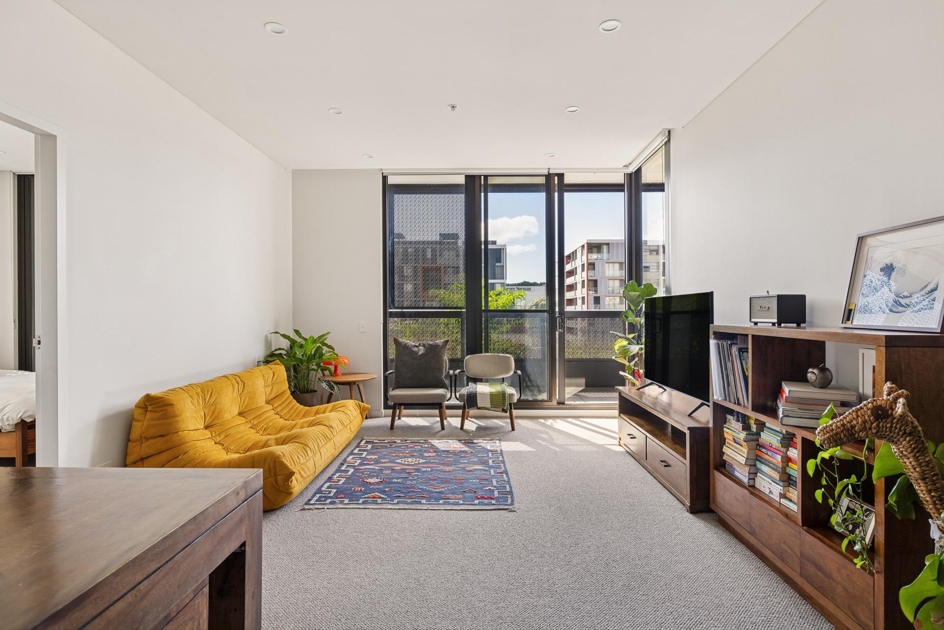 This apartment has an elevated position and wide footprint, with all rooms opening to the full-width balcony overlooking the pocket park at your door. The main open-plan living area effectively separates two queen-sized bedrooms into private wings, the main with ensuite and the second with adjacent bathroom. Well-appointed with quality finishes throughout, it makes a comfortable base in an urban village setting. Make the most of the building’s rooftop pool and barbecue terrace, or stroll the garden-lined streetscapes outside to East Village shops, Danks Street supermarkets, Green Square Train Station, Waterloo Metro Station and Moore Park.