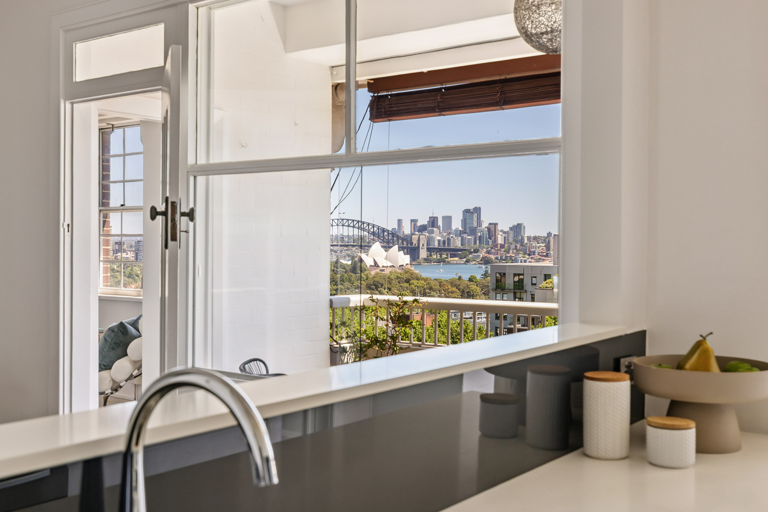 Set high within Potts Point’s distinguished ‘Byron Hall’, this refined Art Deco sub-penthouse captures majestic views from the CBD skyline to The Sydney Harbour Bridge, Sydney Opera House, Botanical Gardens, and out to The Heads. Positioned well above the surrounding buildings, the residence offers complete visual privacy and an ever-changing outlook that enhances its sense of calm and space - an ideal setting for those seeking a low-maintenance yet luxurious city base, and attractive as a trophy asset with compelling opportunity for down-sizers. Gracefully appointed interiors retain the building’s classic character, with high ceilings, and an all-white aesthetic, while large windows invite natural light and cooling sea breezes. Known as a landmark of the area, the centrally-located address is admired for its architectural beauty, including a grand terrazzo and wood-panelled lobby and magnificent shared rooftop terrace with harbour/city panoramas. Offering a balcony box seat for VIVID and the NYE fireworks, within a friendly and eclectic community of professionals and artists . First time offered in 33 years.
