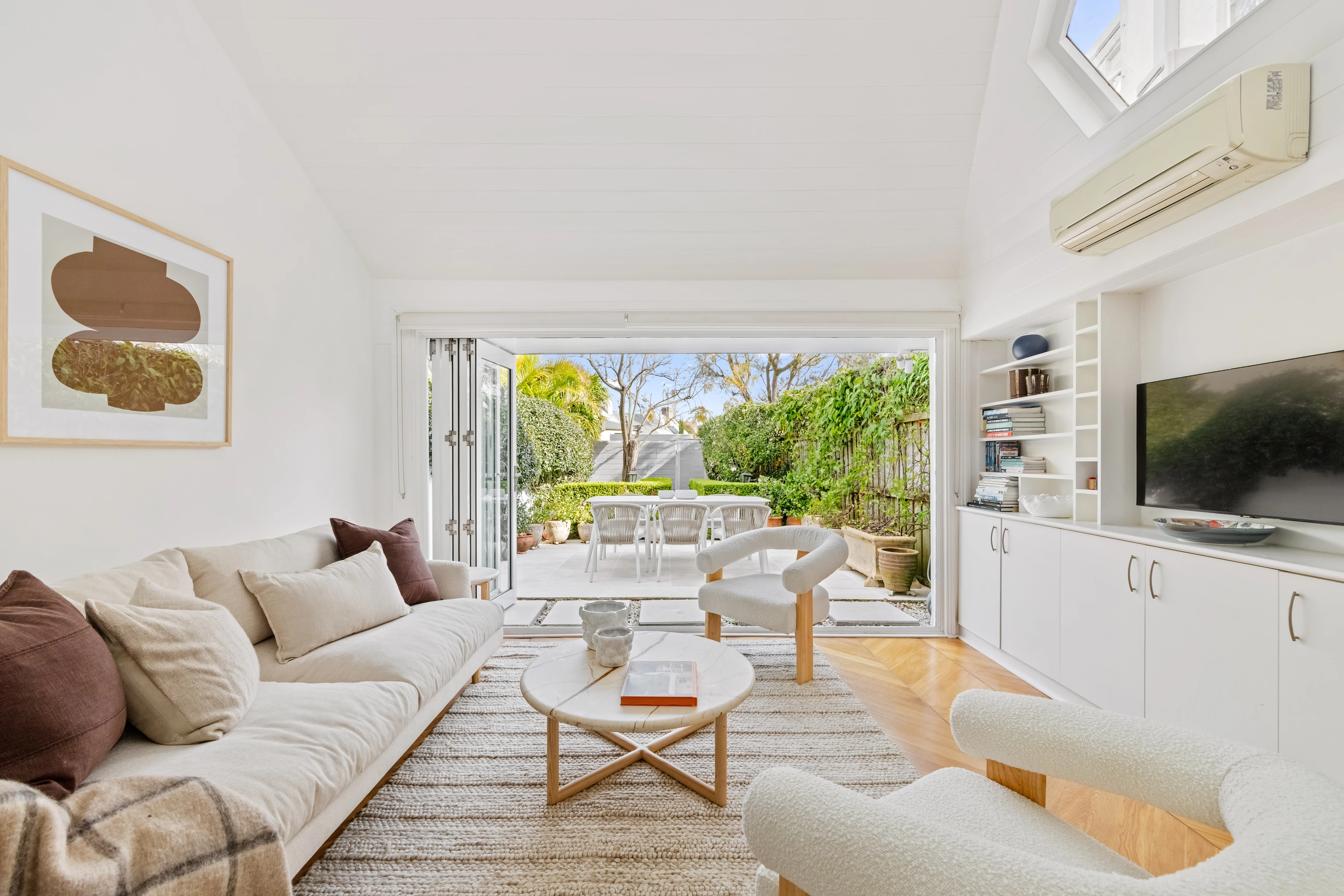- Bi-folds open to an entertainer's courtyard