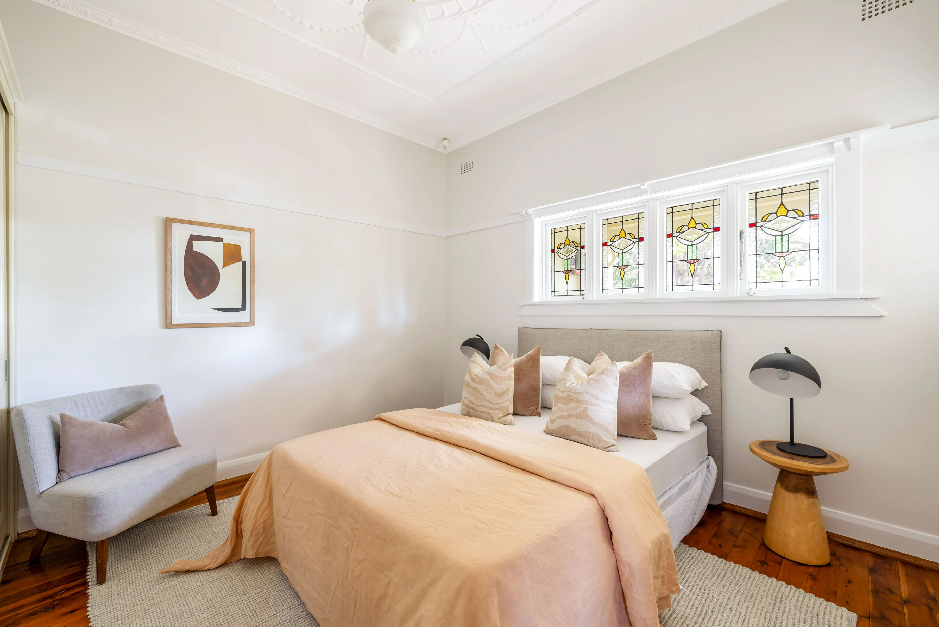 - High ornate ceilings, leadlight windows