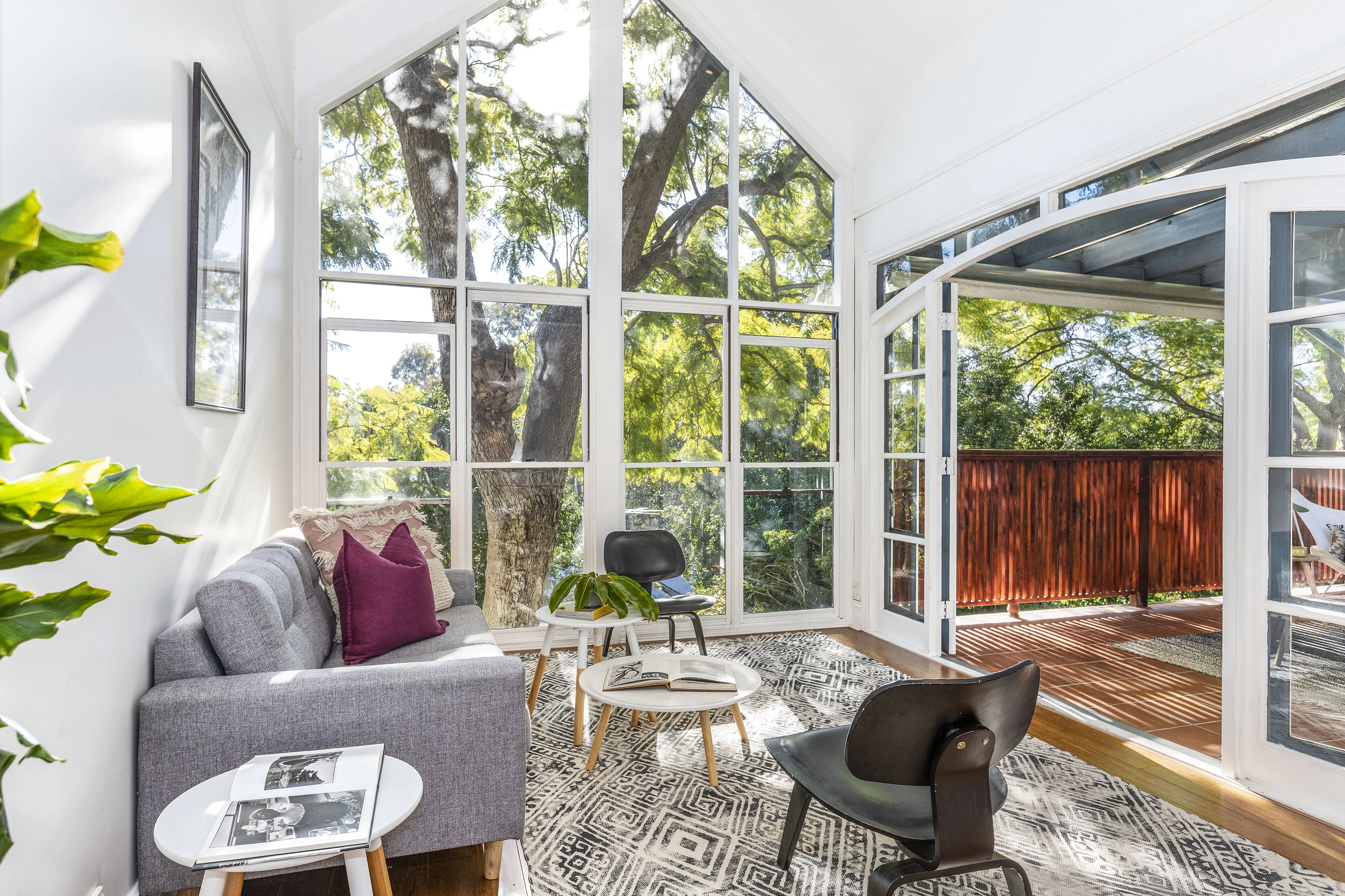 A dual-level home with garden backdrops, this residence has floor-to-ceiling glass to a canopy of greenery. With a sophisticated treehouse sensation, it’s a unique entertainer in a top area.