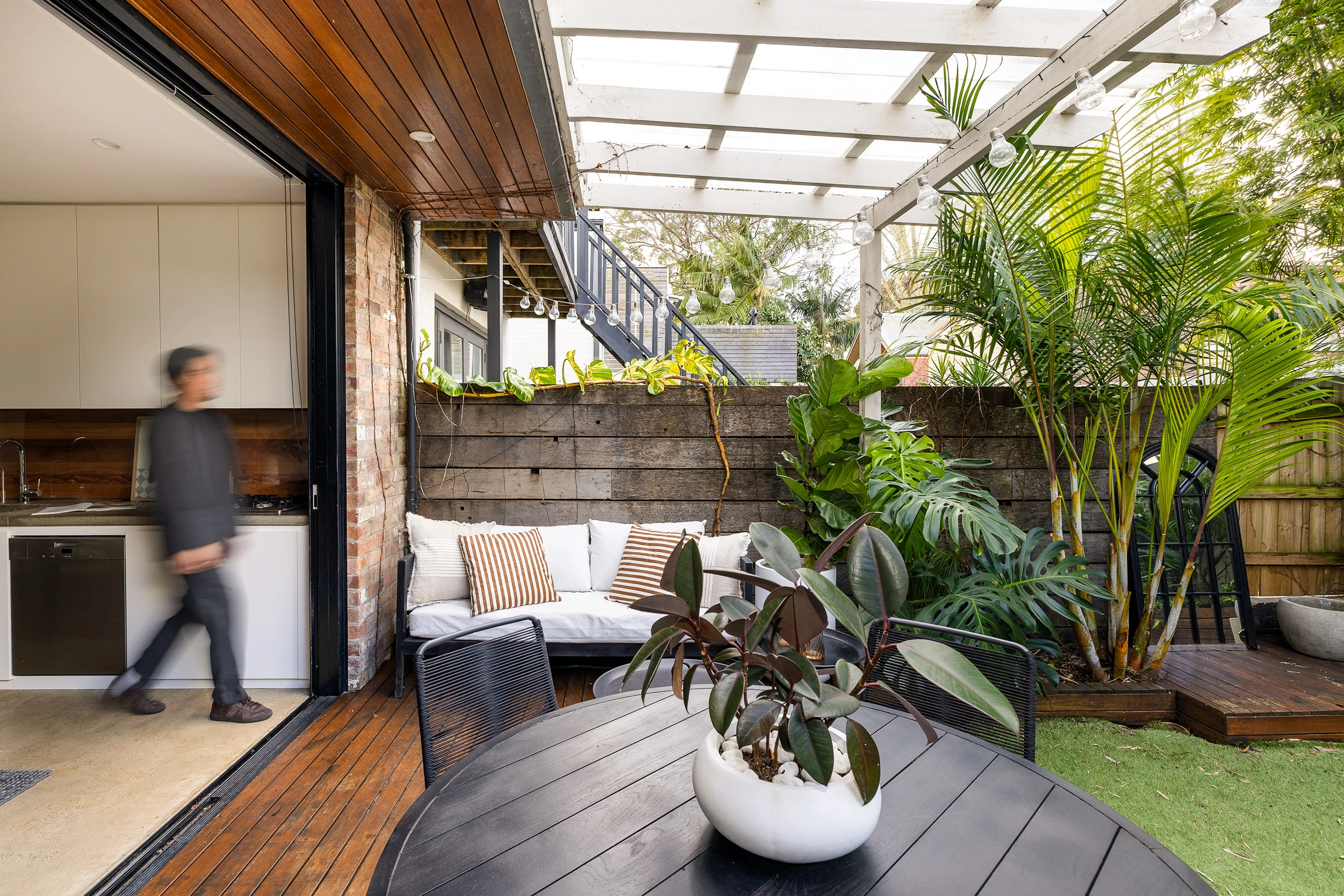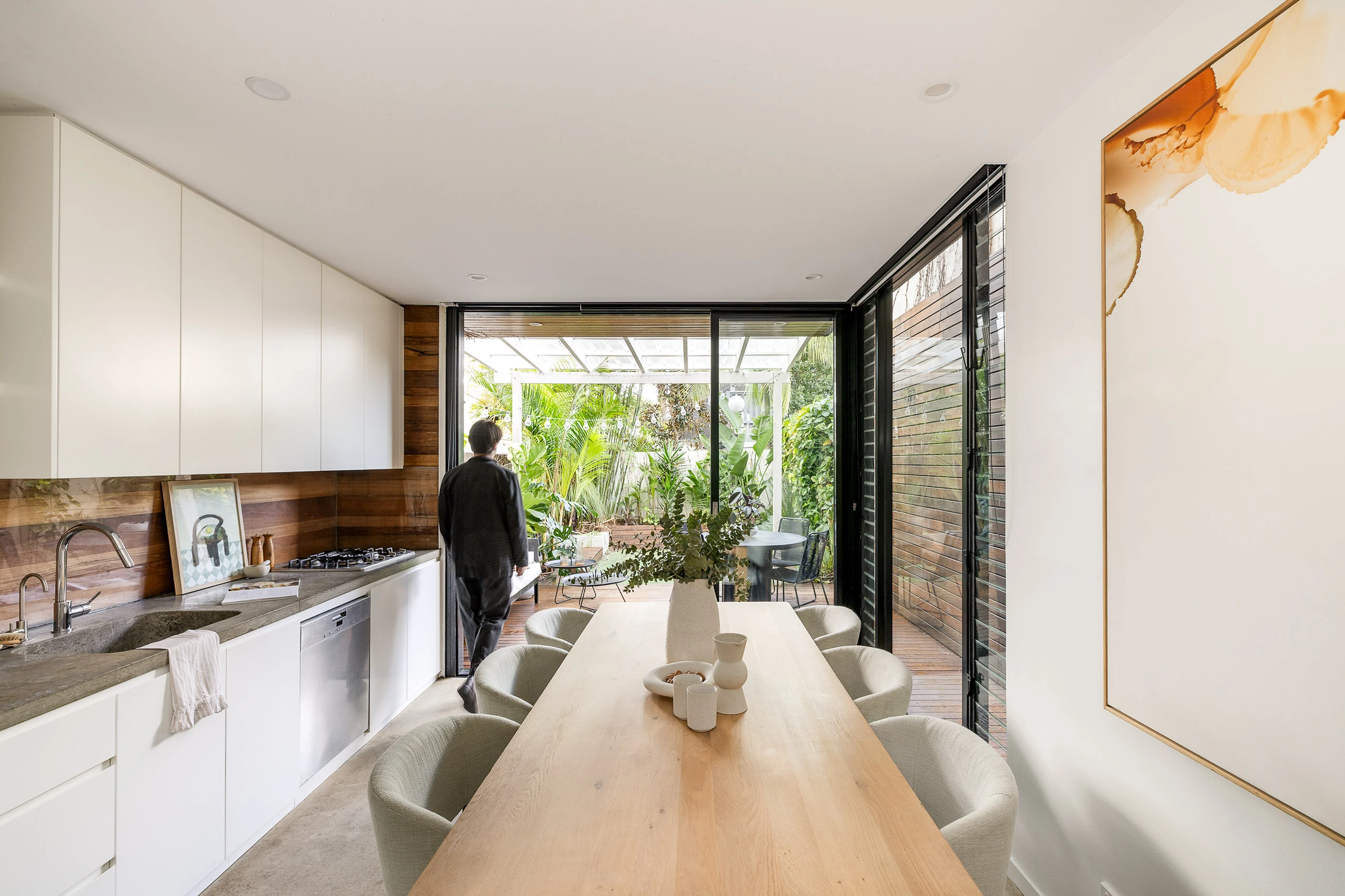 - Flows out to decked patio and courtyard