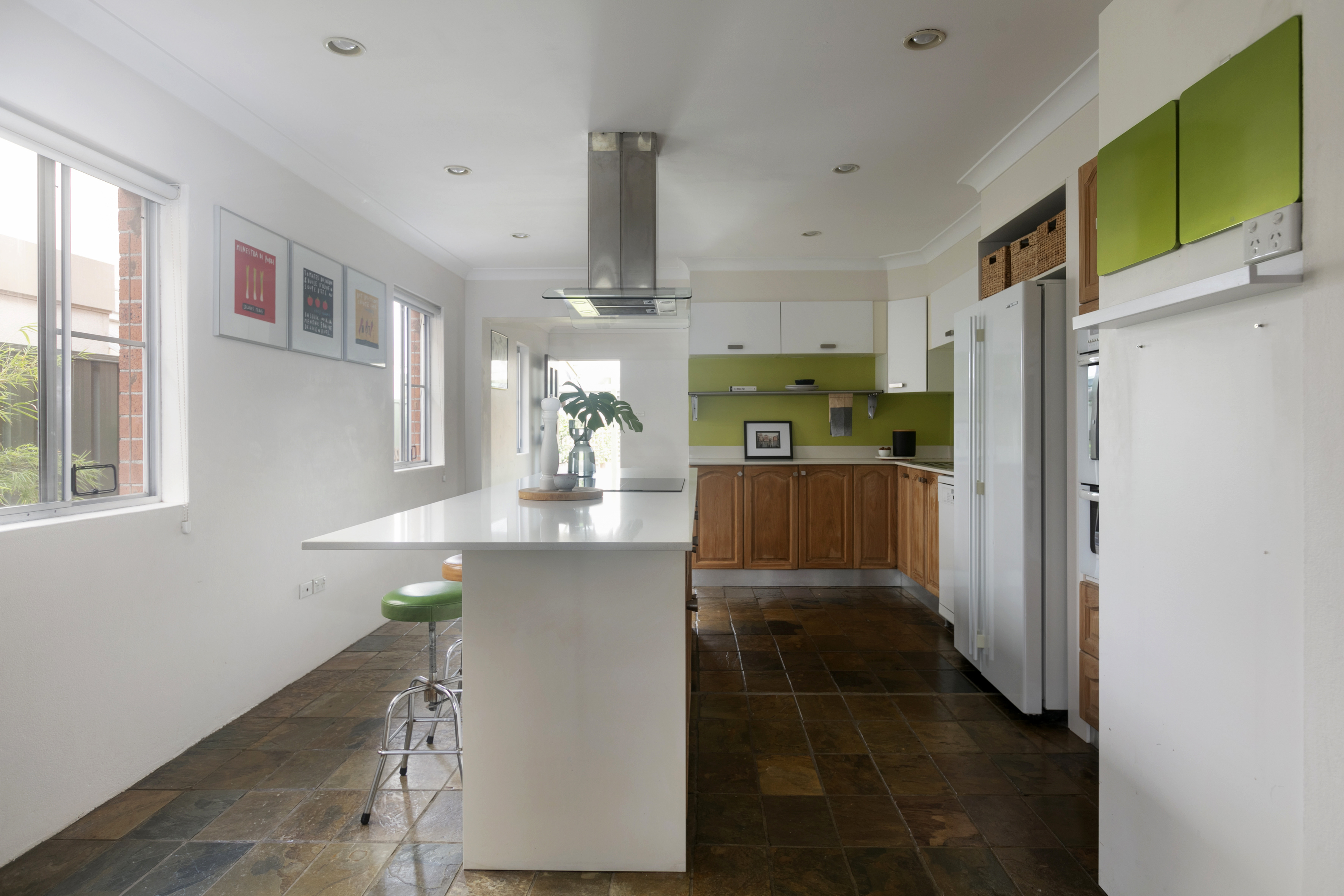 - Big eat-in stone island, induction cooktop