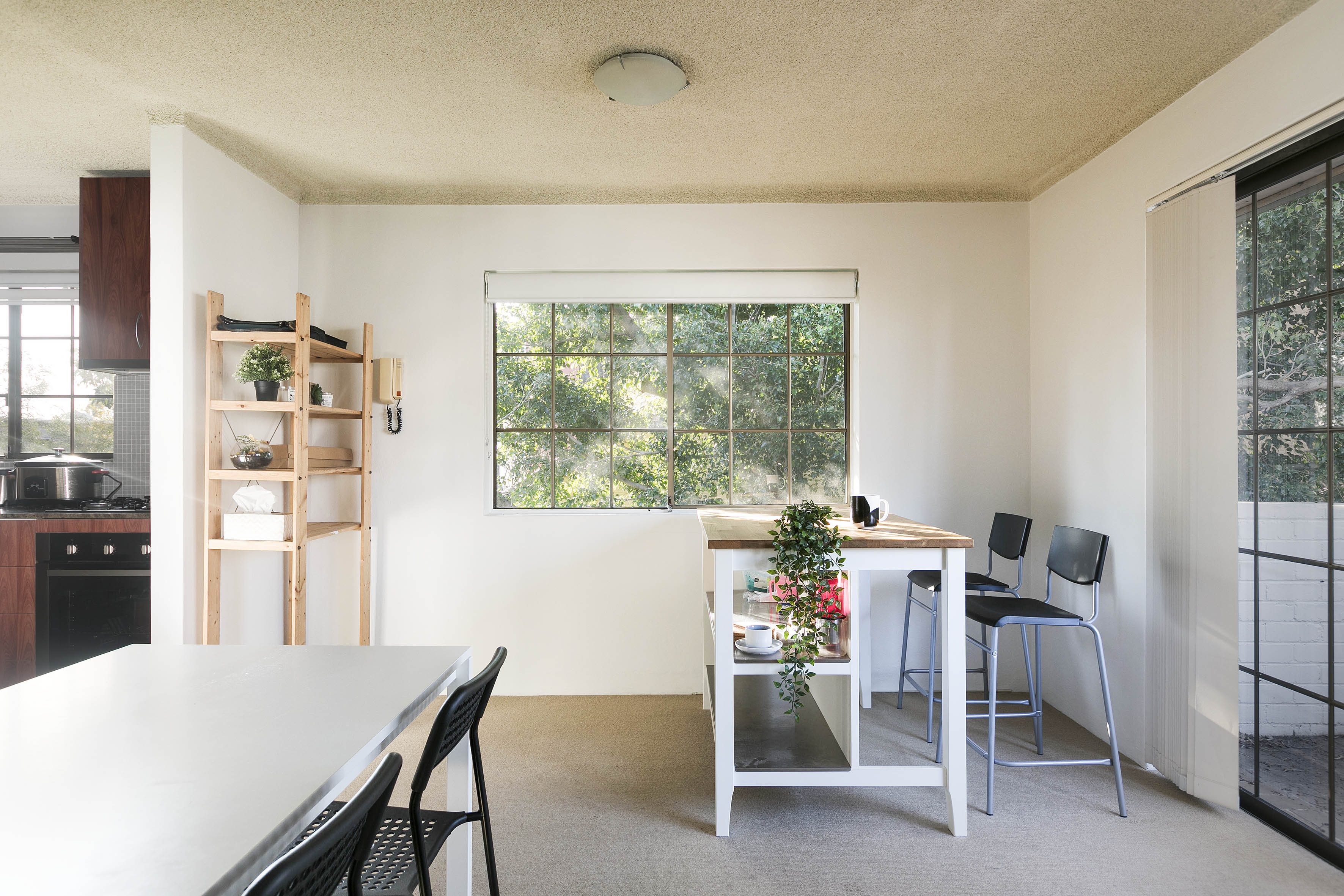 - Sliding glass to balcony, leafy views