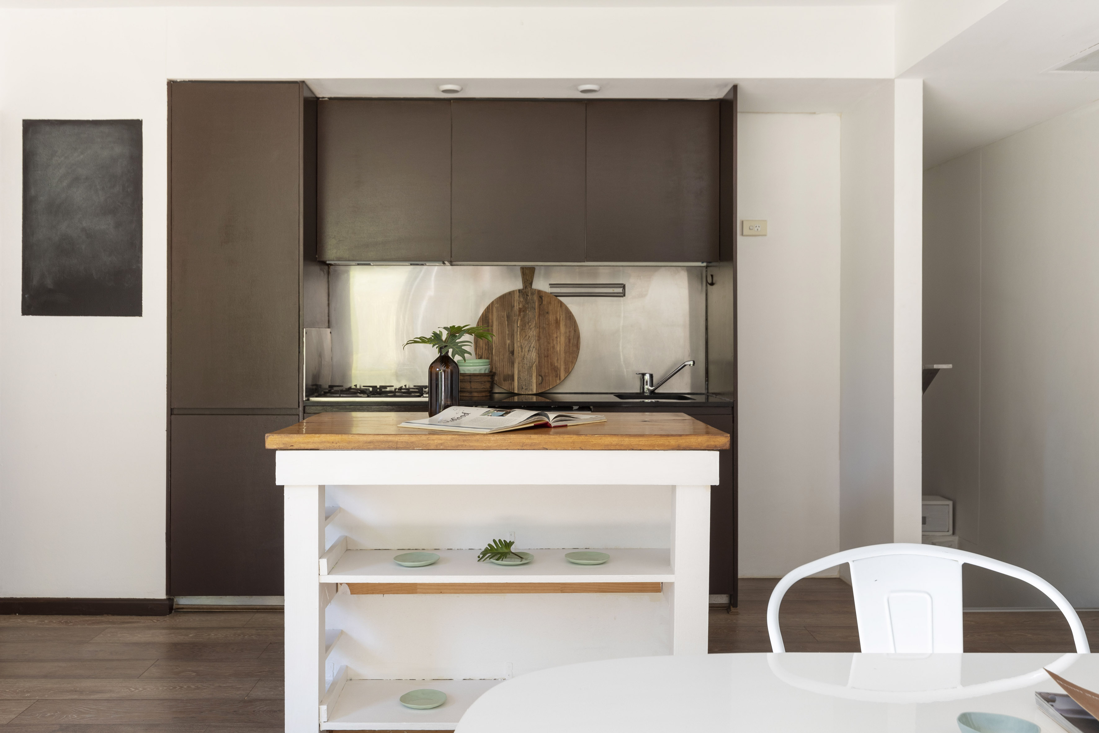 - Open living, corner of glass, gas kitchen