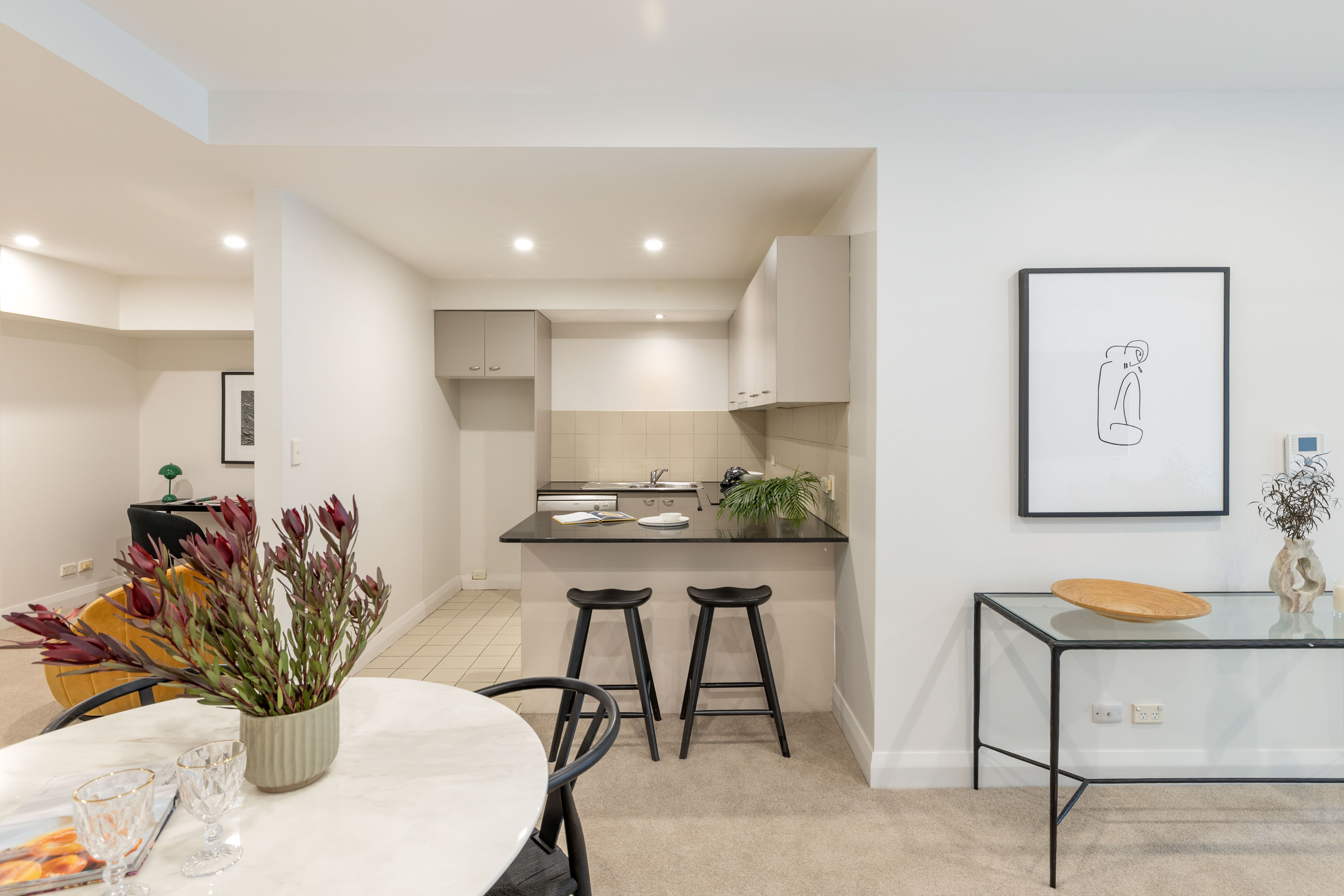 With a generous 85sqm floorplan (one bedroom + study), this residence is set on the first floor of the well-regarded Angus House warehouse conversion. A home of unique style amid Darlinghurst's best cosmopolitan restaurant and cafe scene, on the edge of Sydney, with a communal terrace and city skyline views from the rooftop.