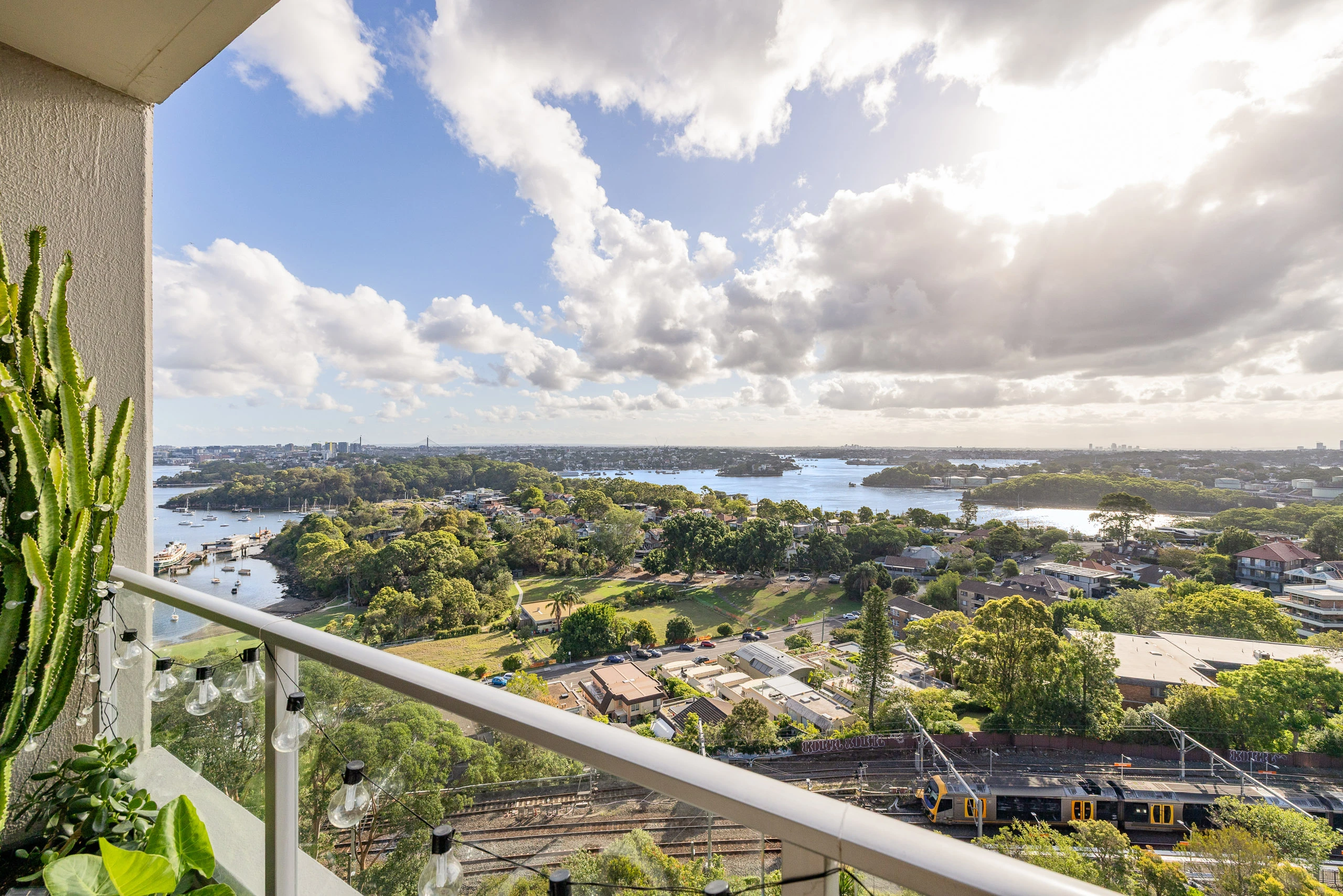 High up in the landmark building ‘Montevideo’, this apartment has spectacular water views capturing Berry Island, Greenwich, Balls Head, Anzac Bridge and surrounding districts. The generous floorplan includes two large bedrooms, one with ensuite bath, and a built-in home office. The separate kitchen is modern and well-appointed, crowned by its own superb vantage over Sydney Harbour. The location puts you in the heart of a desirable Lower North Shore village hub, with Waverton Park, bush walks and train station just outside, along with a wide choice of local cafés and dining spots. A low-maintenance home or investment in a sought-after harbourside locale. Stroll to Victoria Cross Metro Station, local schools, foreshore parks and attractions, and North Sydney CBD.