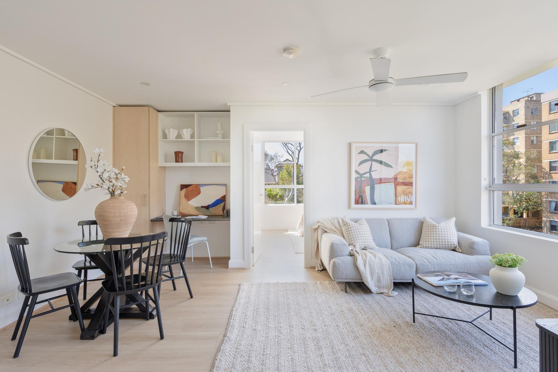 Set high on the fifth floor of Gardinia, this renovated apartment captures leafy treetop views and abundant natural light from its prized northeast corner. Thoughtfully updated with oak floors, a stone kitchen and sleek bathroom with tub, it balances timeless detail with modern finishes. Residents enjoy access to a spectacular rooftop entertainer’s terrace, landscaped with BBQ facilities and panoramic views stretching from the city skyline to Botany Bay. Secure parking, lift access and a walk-everywhere position add to the home’s lifestyle appeal, moments from Centennial Park, Oxford Street and Woollahra village. Free Strata Report at bw.com.au
