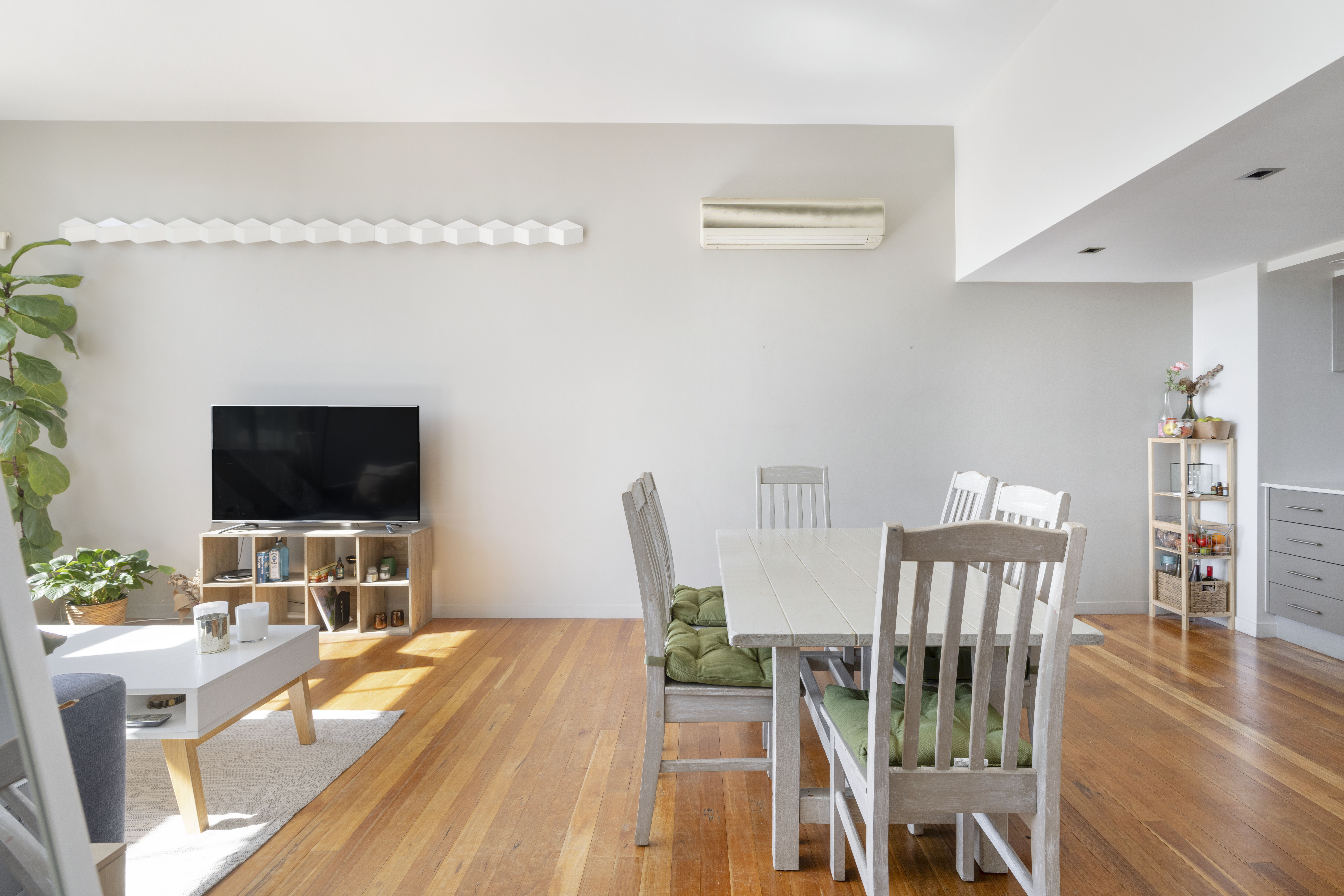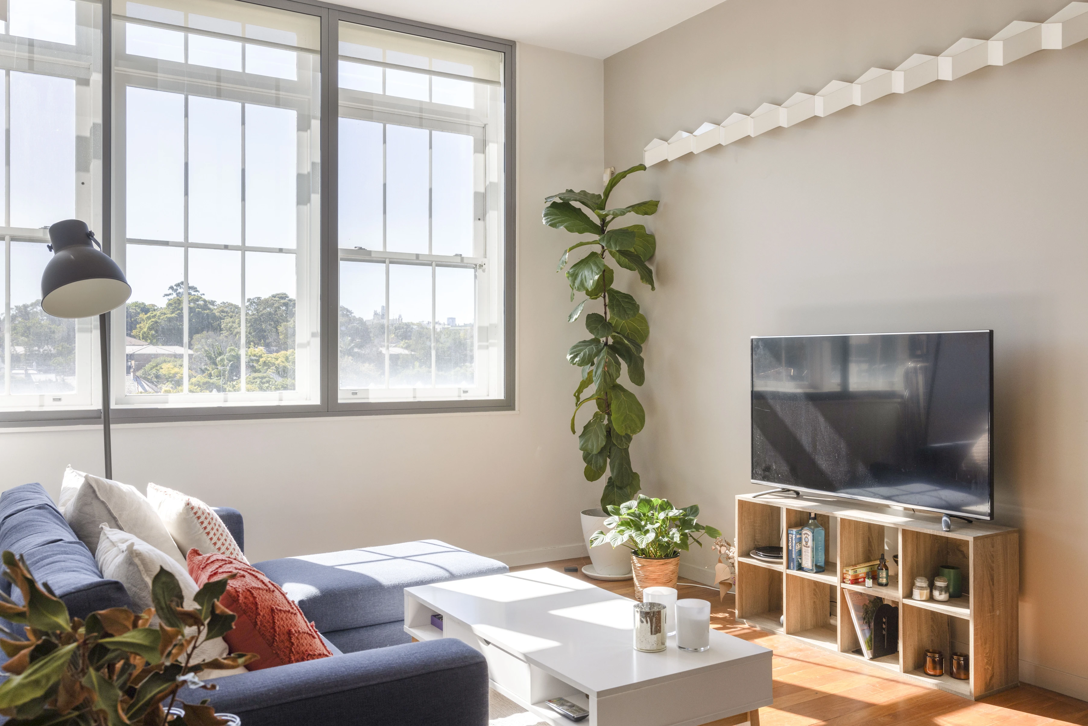 - Open-plan living, double-height ceilings