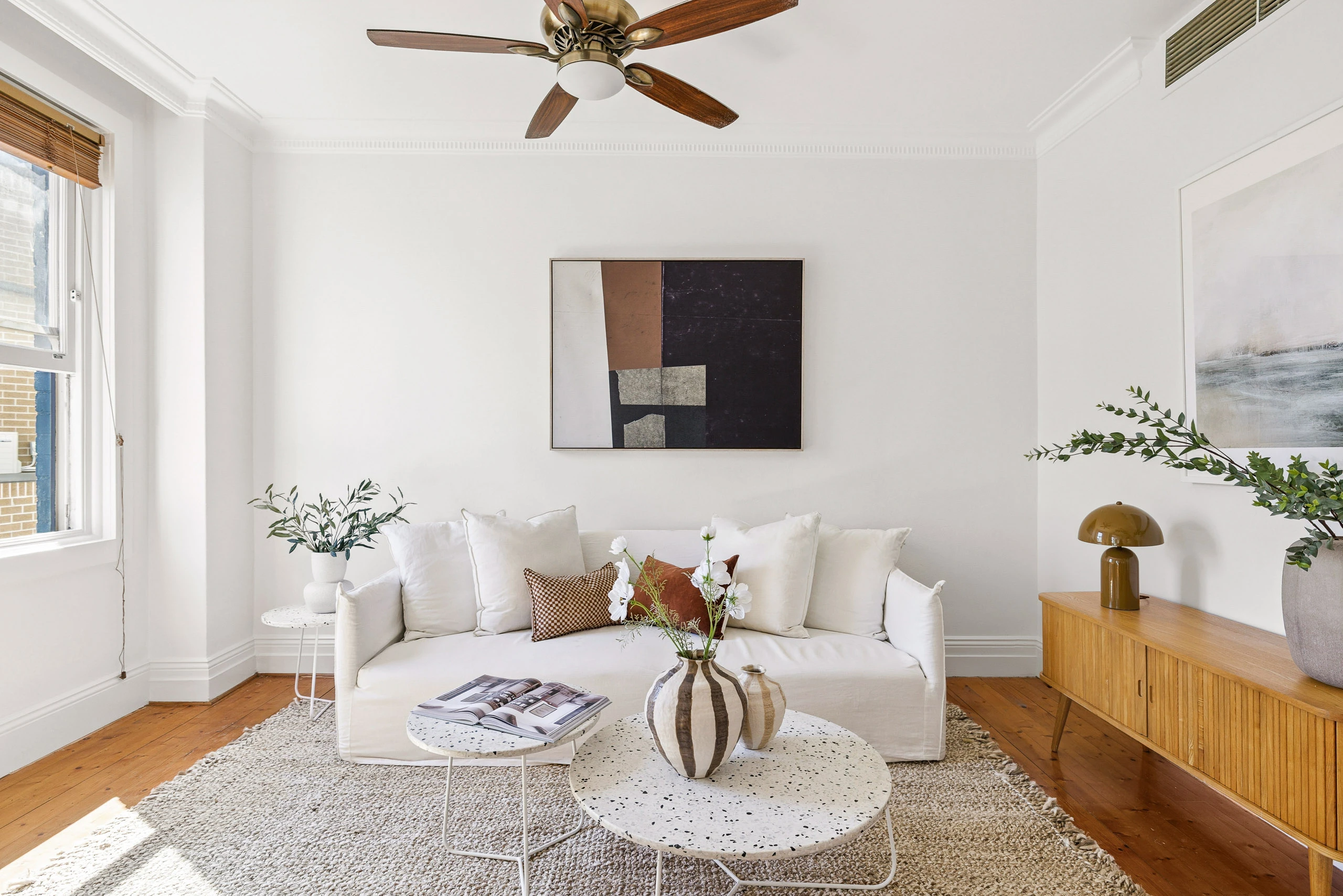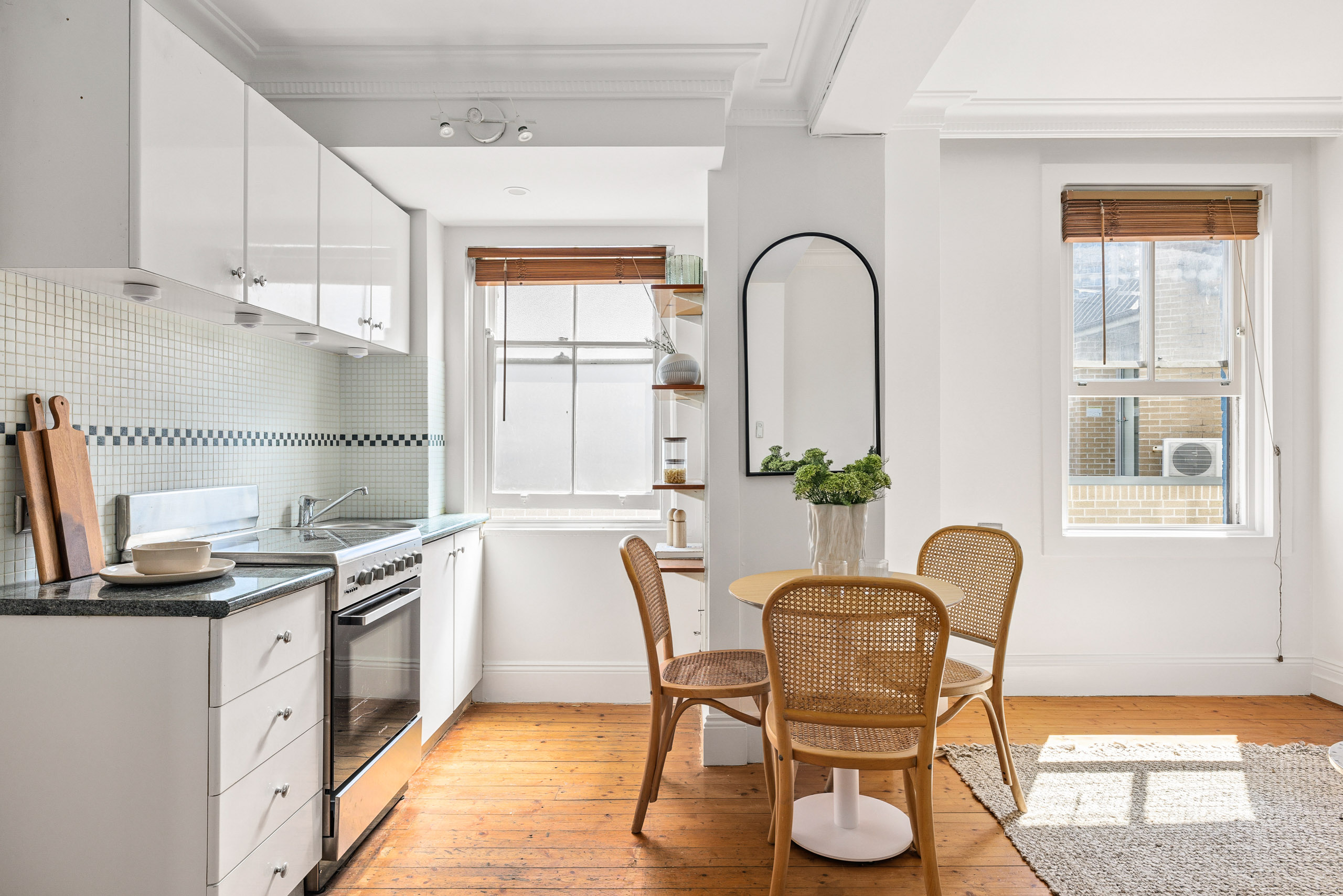 - Classic polished timber floorboards