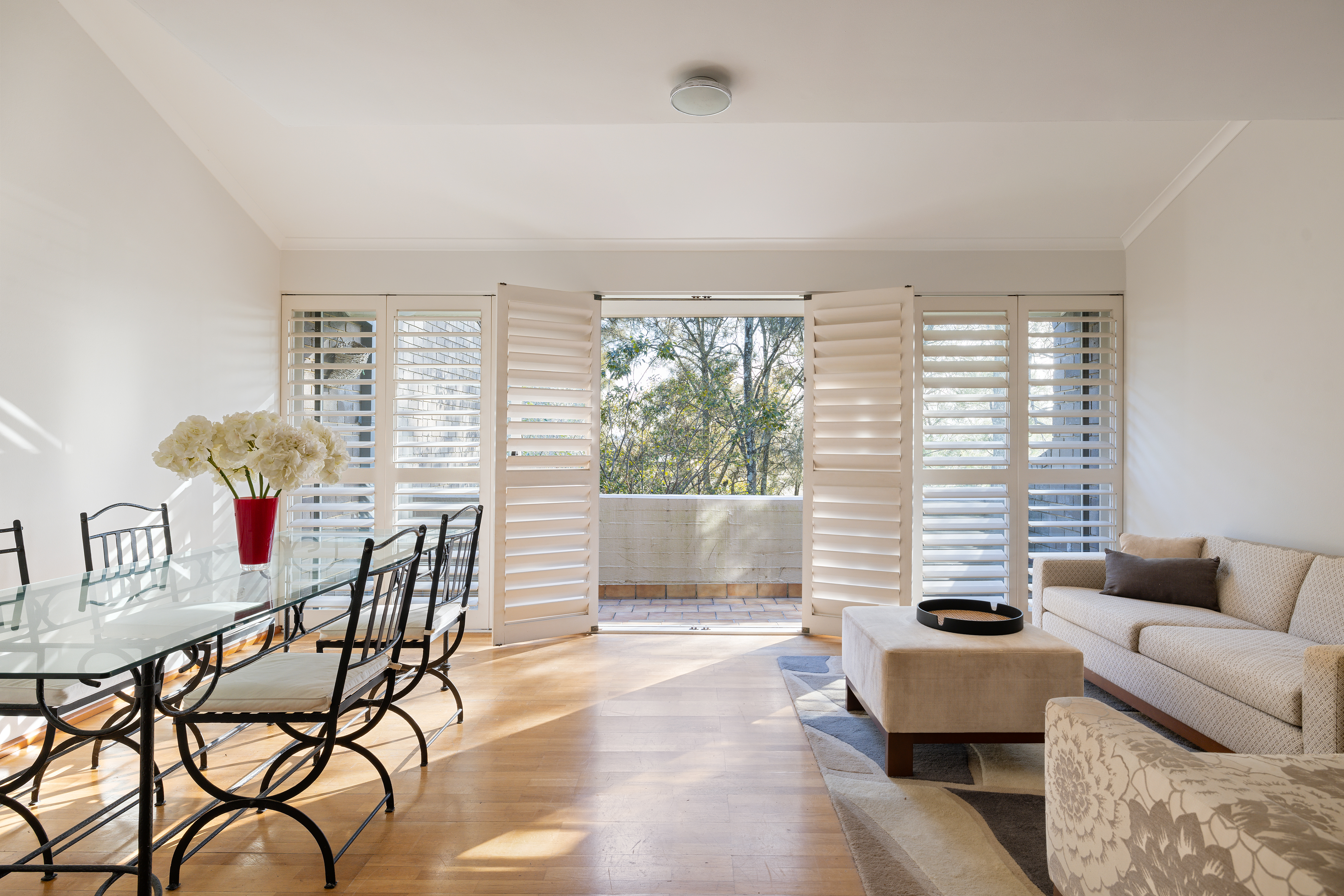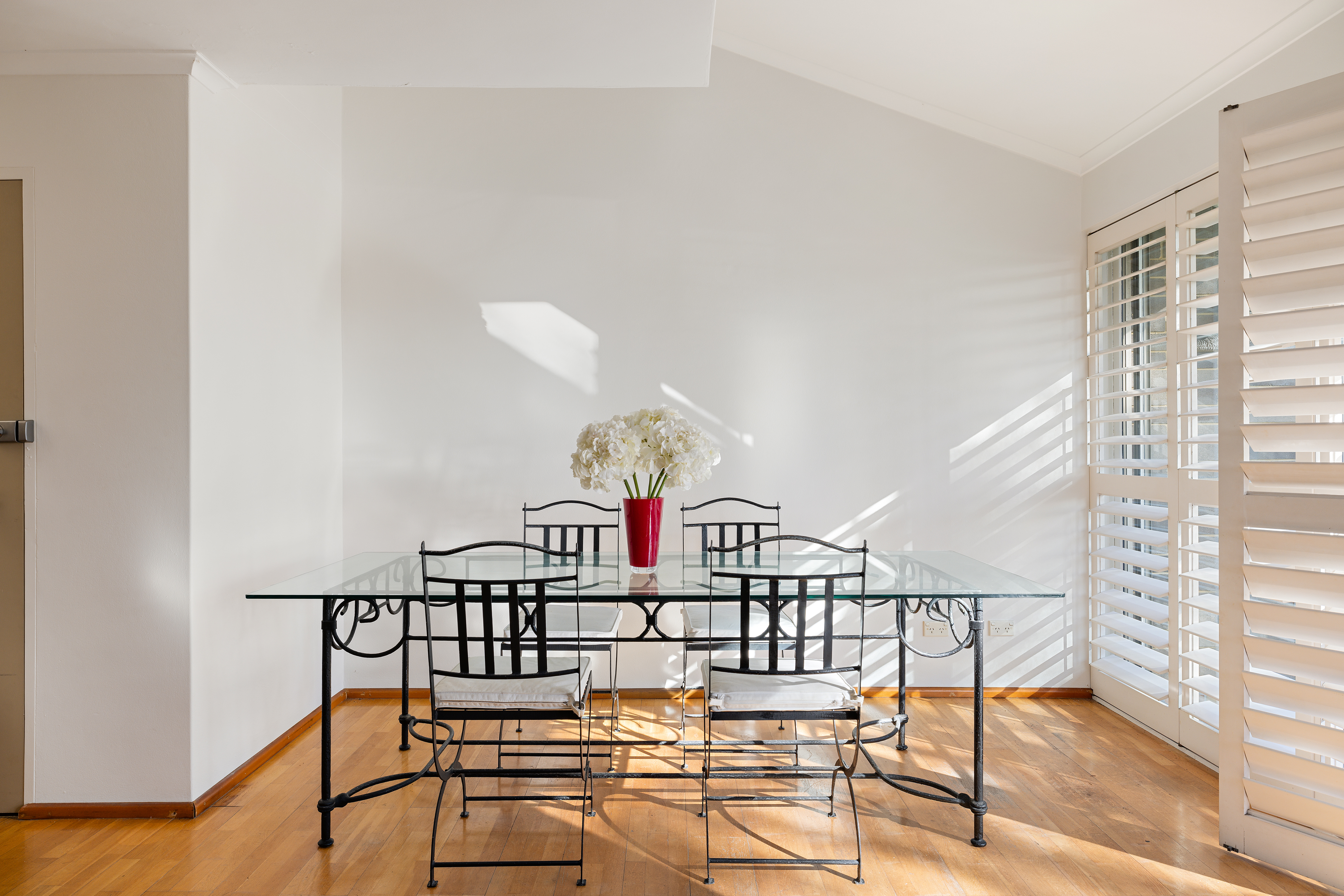 - Plantation shutters, elegant timber flooring