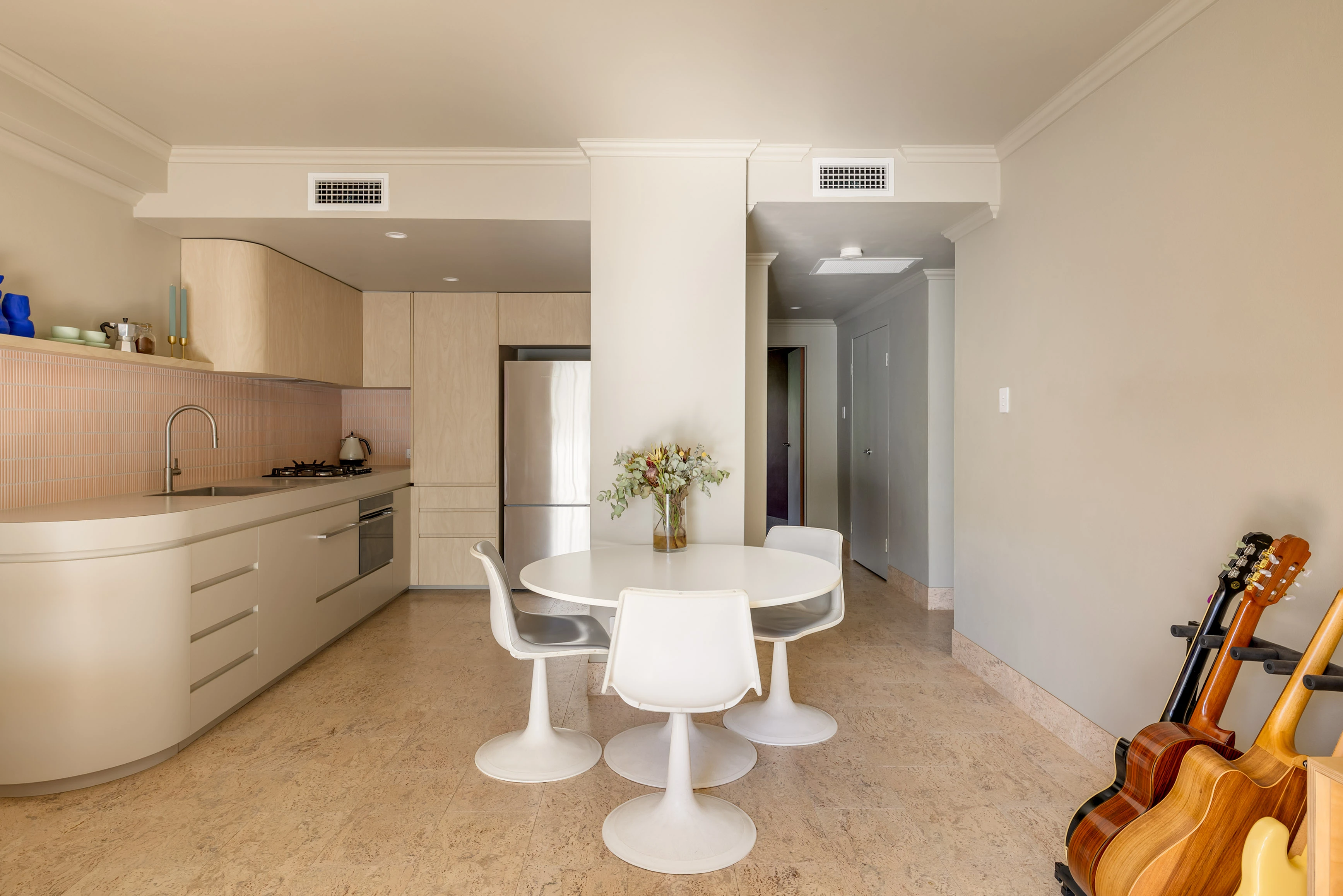 - Immaculate interiors, curved kitchen detail