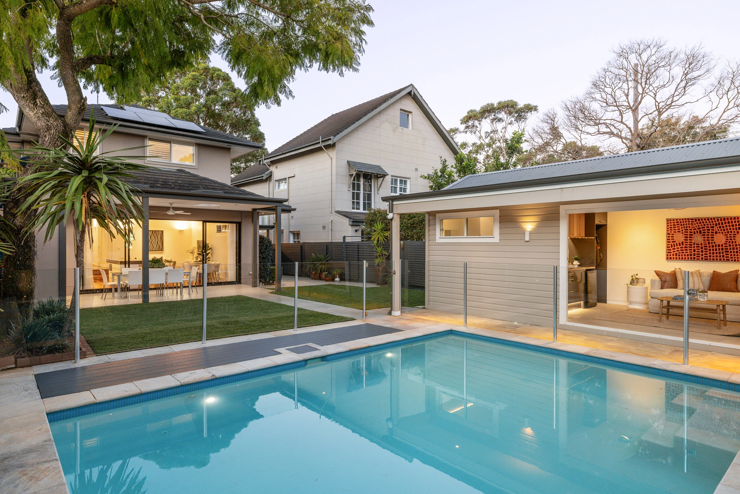 A contemporary home designed for relaxed family living, this versatile residence delivers generous space, leafy outlooks, and seamless indoor/outdoor connection with the integrated outdoor kitchen. With its own self-contained poolside studio/cabana with pull down bed, it offers flexibility for guests, teenage retreat or work from home opportunity.
