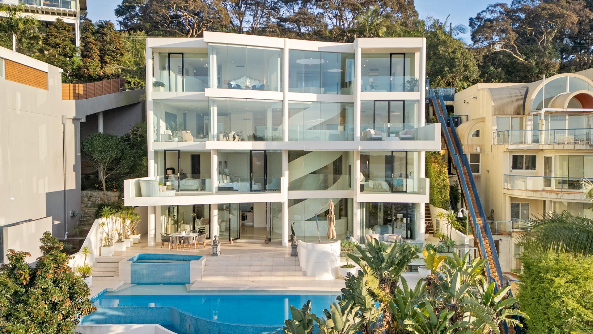 The ultimate waterfront trophy home with Middle Harbour views and two yacht berths, this residence is in a class of its own, a rarity that would be impossible to recreate under today’s construction parameters. A masterpiece 15 years in the making, originally conceived by the visionary architect Ralph Cunningham FRAIA. With five levels embracing a Sydney Harbour cliff face, it’s defined by signature curves, a striking sculptural staircase, and luxurious infinity pool setting, comprising around 1600sqm of indoor/outdoor living space. With all bedrooms designed with private ensuites and water-facing aspects, it invites you to take in the marine activity over the Spit to the marina opposite, and views to the ocean, for ever-changing scenes both day and night. Further connecting with the surrounds, a covered inclinator transports guests to the Japanese garden, and on to the jetty below. Offering a unique experience like nothing else, in a home of incredible scale, high-spec finishes, multiple wings for residents and guests, and waterfront facilities.