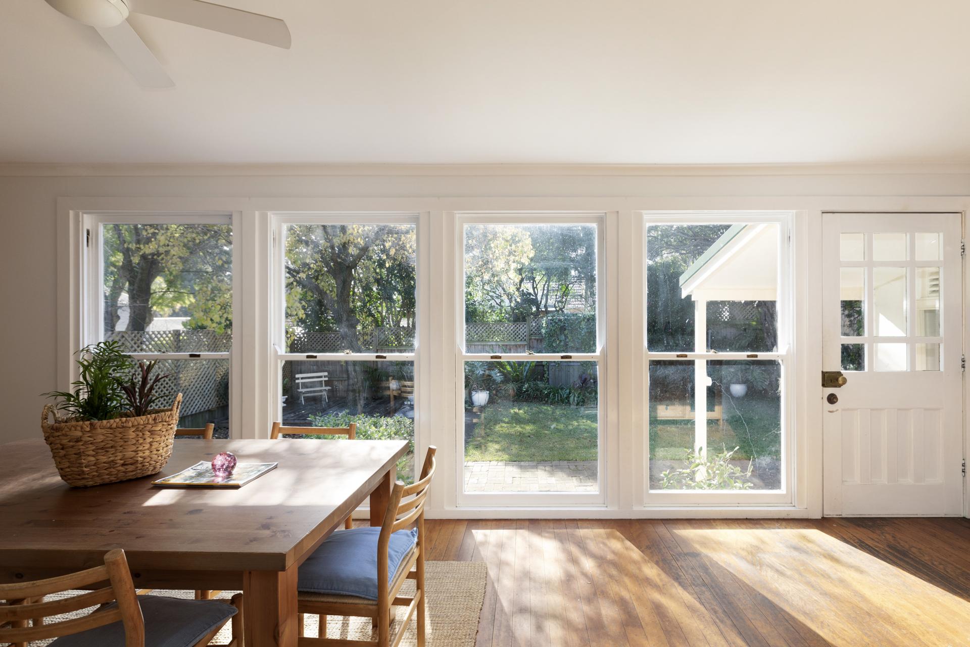 - Walls of windows w/ backyard vistas