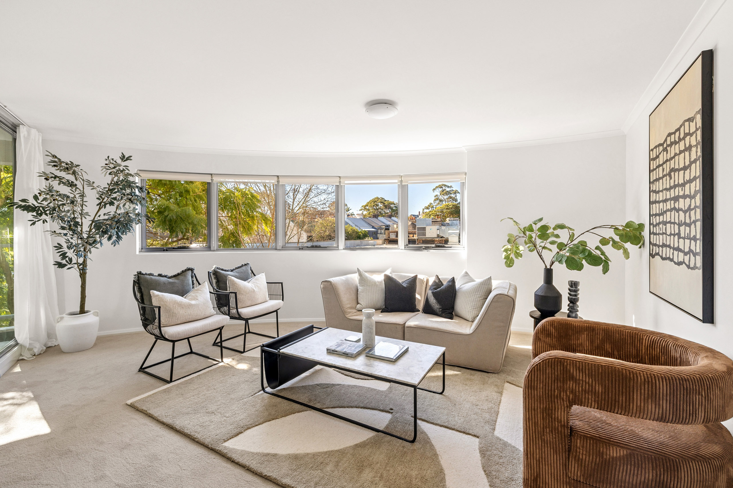 The gently curved open floorplan and treetop views bring an impressive sense of scale and privacy to this one-bedroom city home. Tucked away at the end of a cul-de-sac opposite Larkin Street Park, it feels peaceful and secluded yet it’s so close to Parramatta Road and Bridge Road transport links, the university precinct and both Broadway and Annandale hubs.