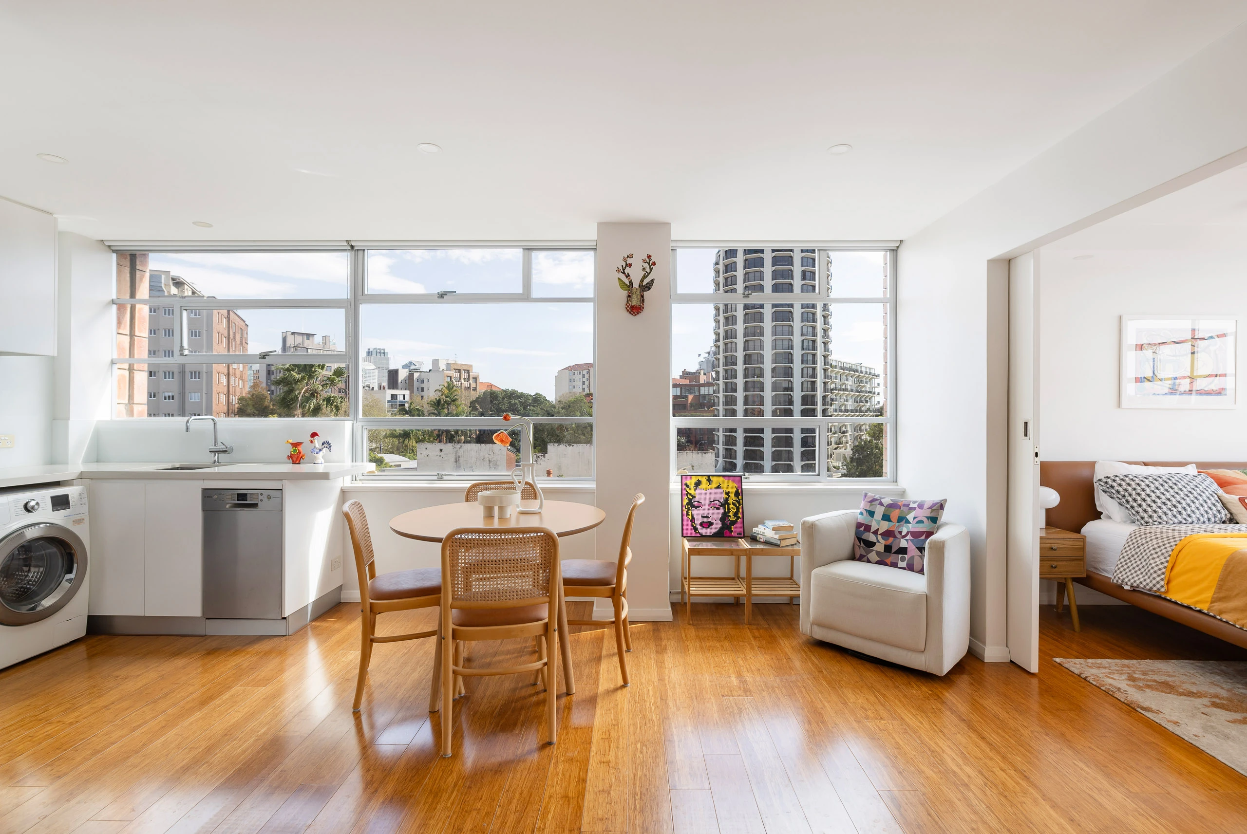 A top-floor sanctuary in Boomerang, this apartment captures sweeping views from the city skyline and Rushcutters Bay all the way to Manly. With a prized northwest aspect and only one common wall, it’s filled with natural light and designed for privacy. Stylishly updated with stone finishes and Smeg appliances, it pairs contemporary living with an unbeatable vantage point in this coveted harbour-fringe setting. Free Strata Report at bw.com.au.