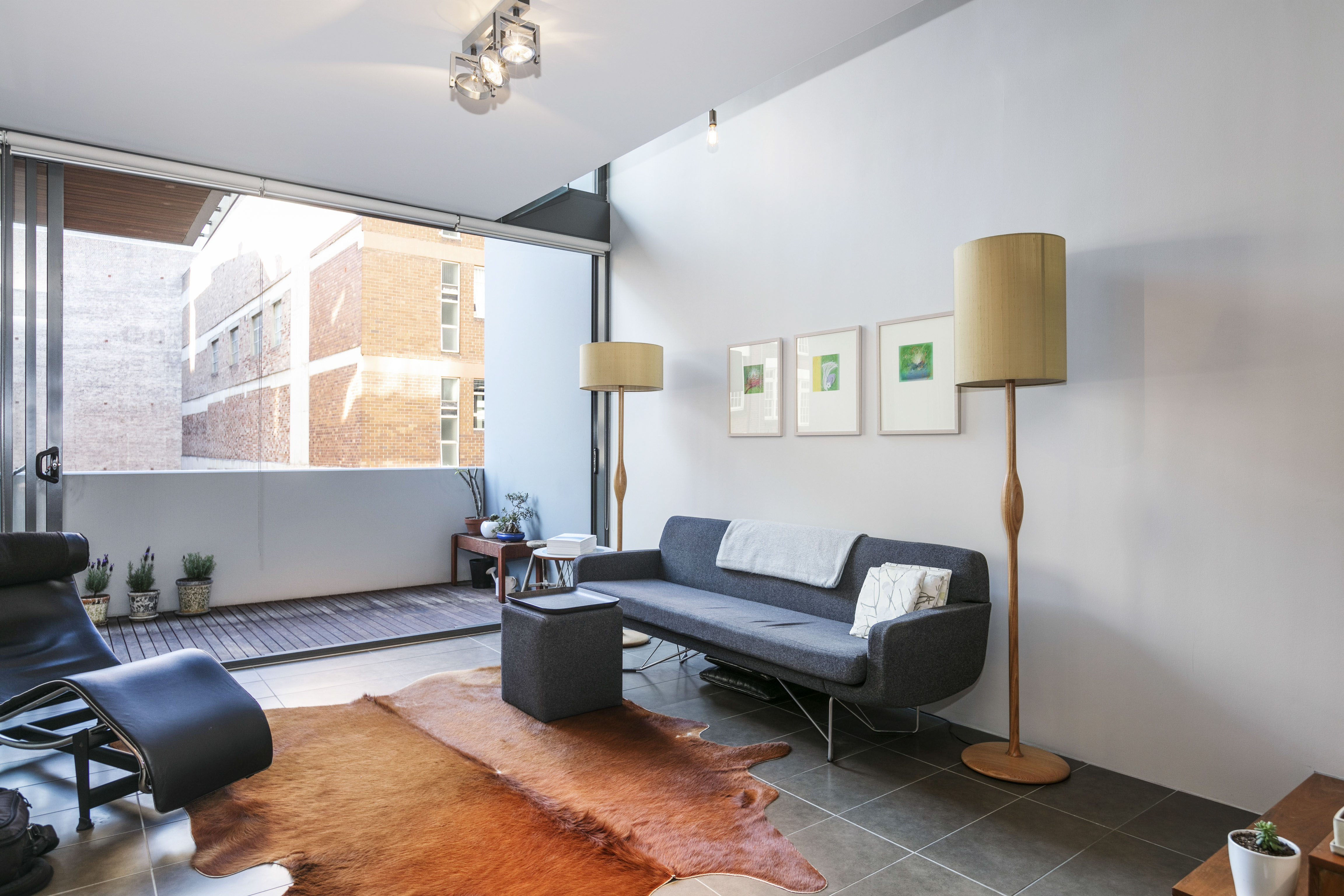 - Full-height glass opening onto terrace
