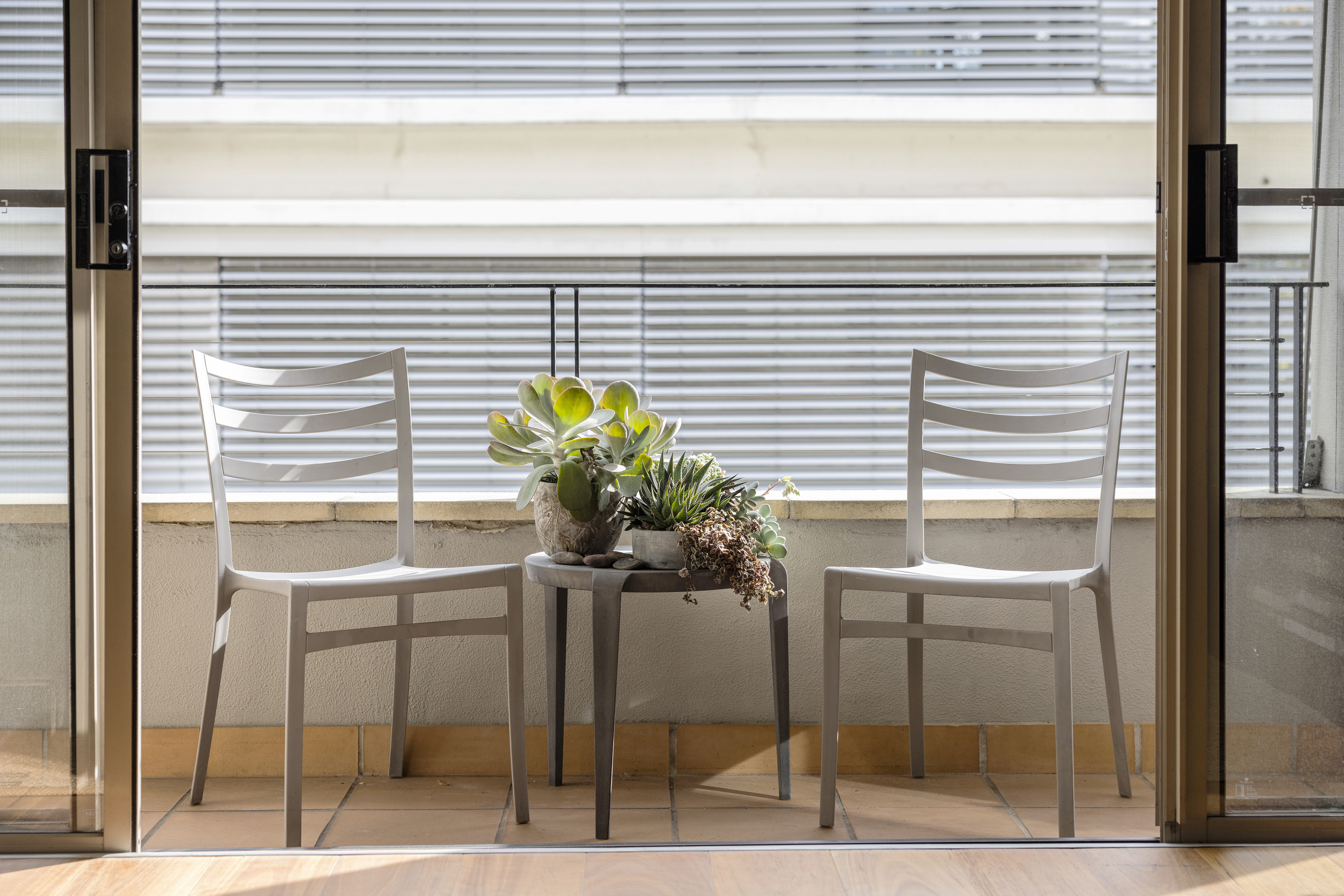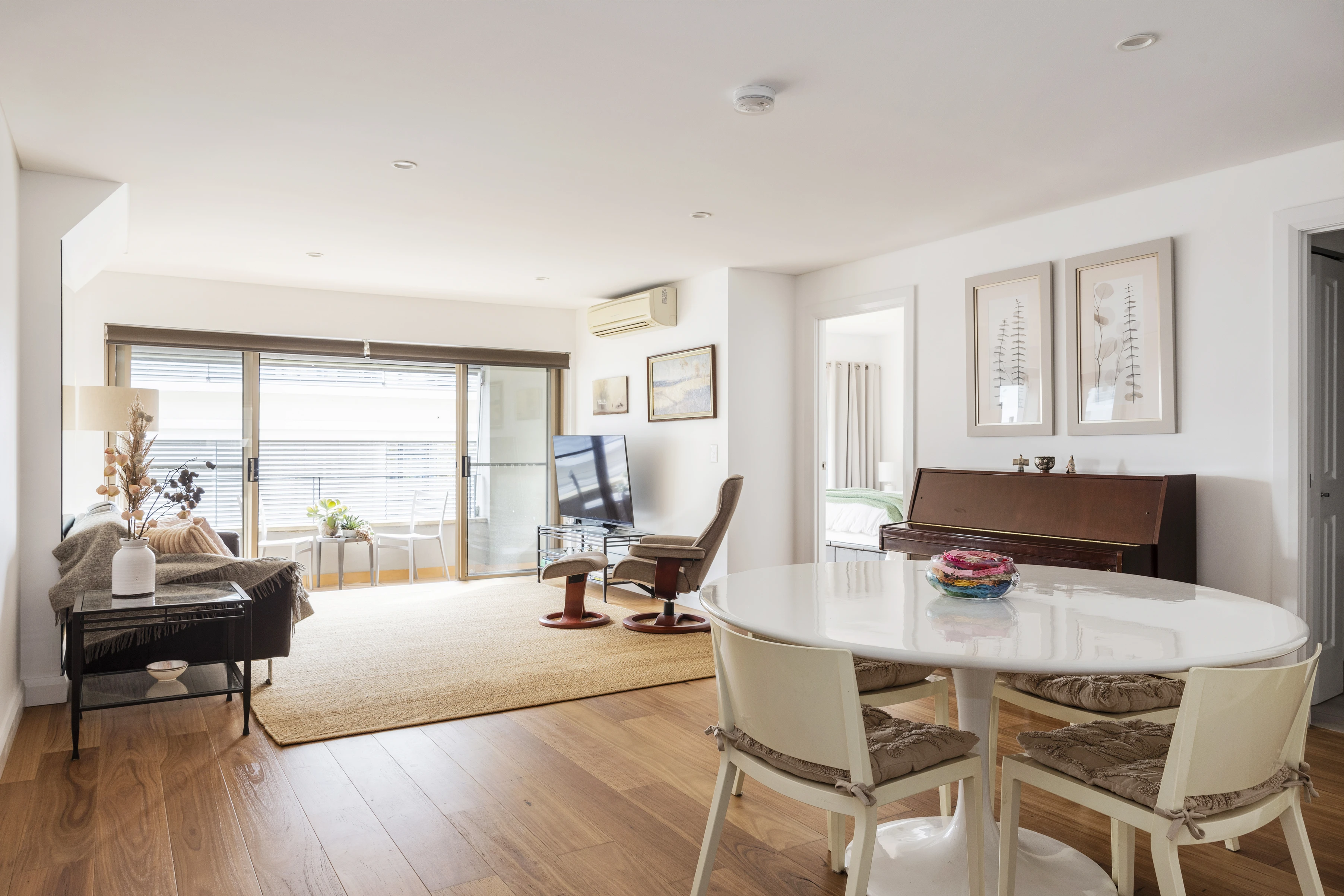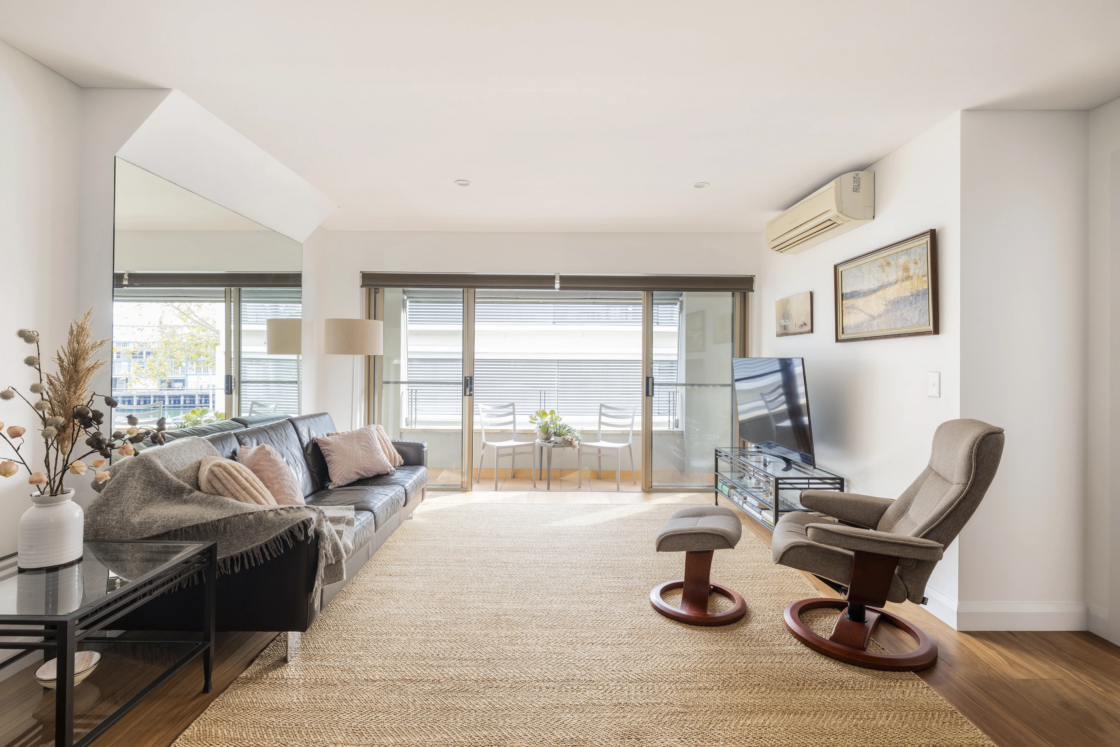 - Open-plan living/dining, private balcony