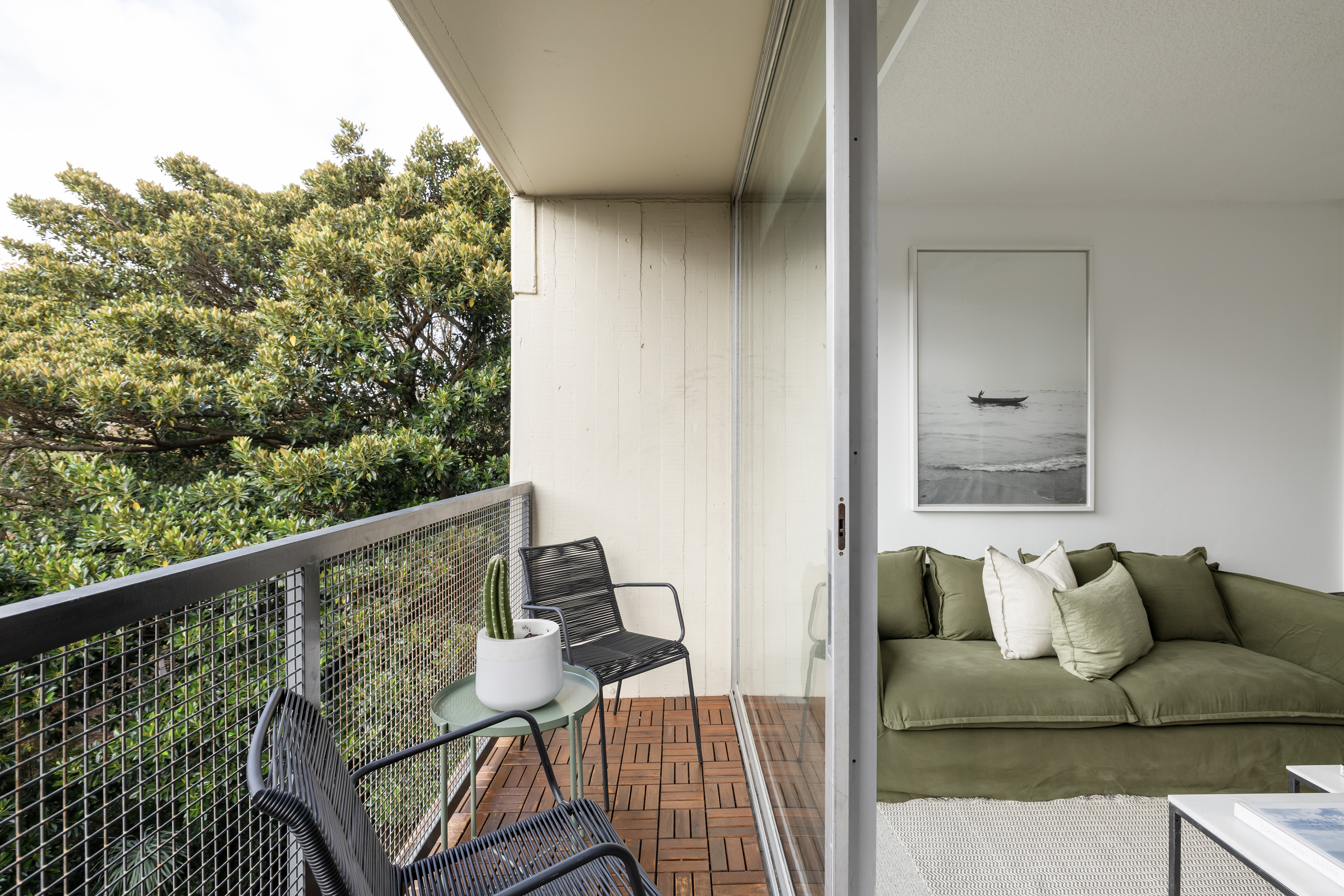 With private treetop outlooks overlooking the tennis courts and parkland at your door, this peaceful apartment has neat modern finishes and a low-upkeep, lock-and-leave floorplan – all the makings of an ideal harbourside start or investment on the cusp of Rushcutters Bay Park.