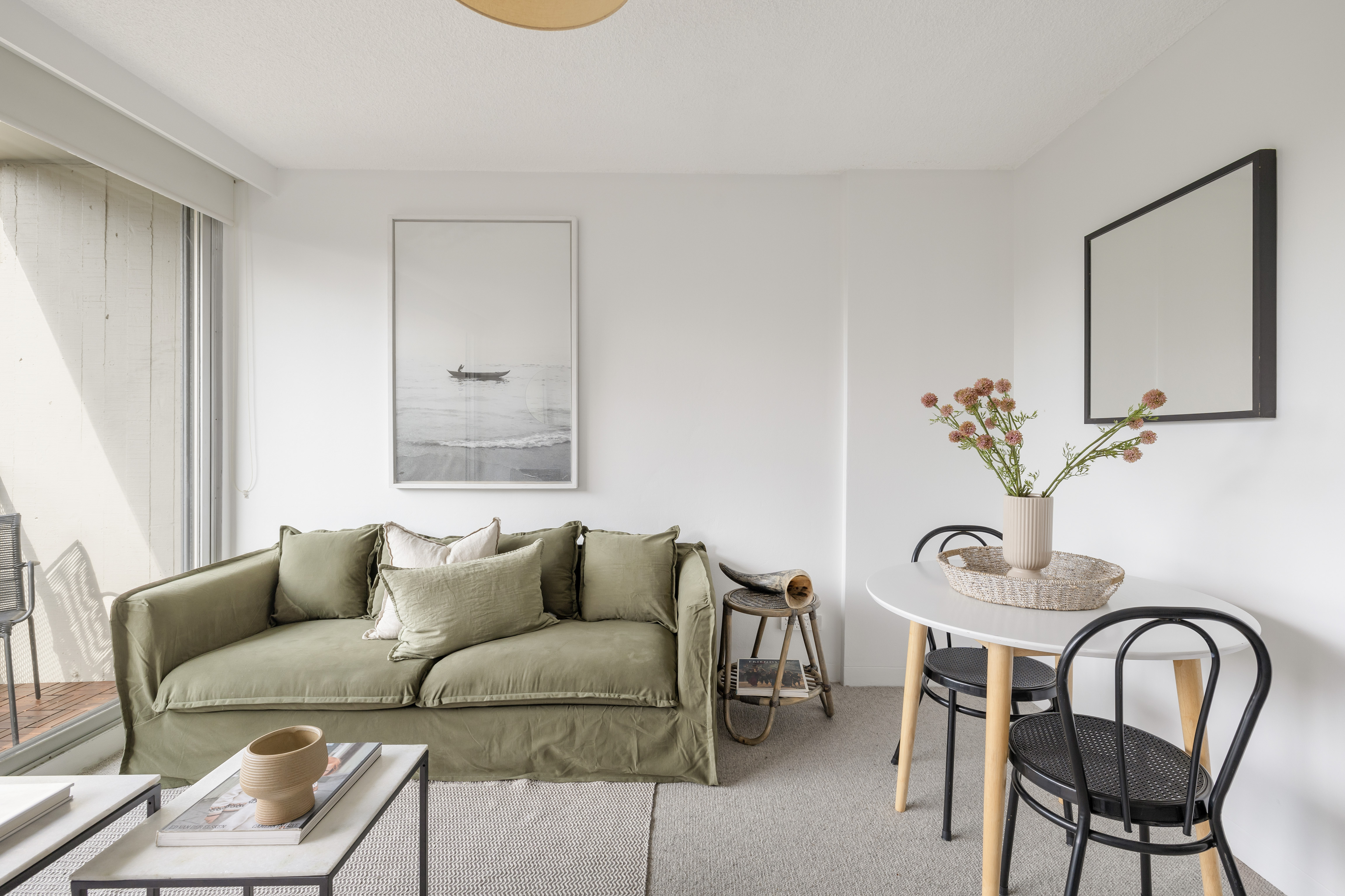 - Open living with full-wall glass doors
