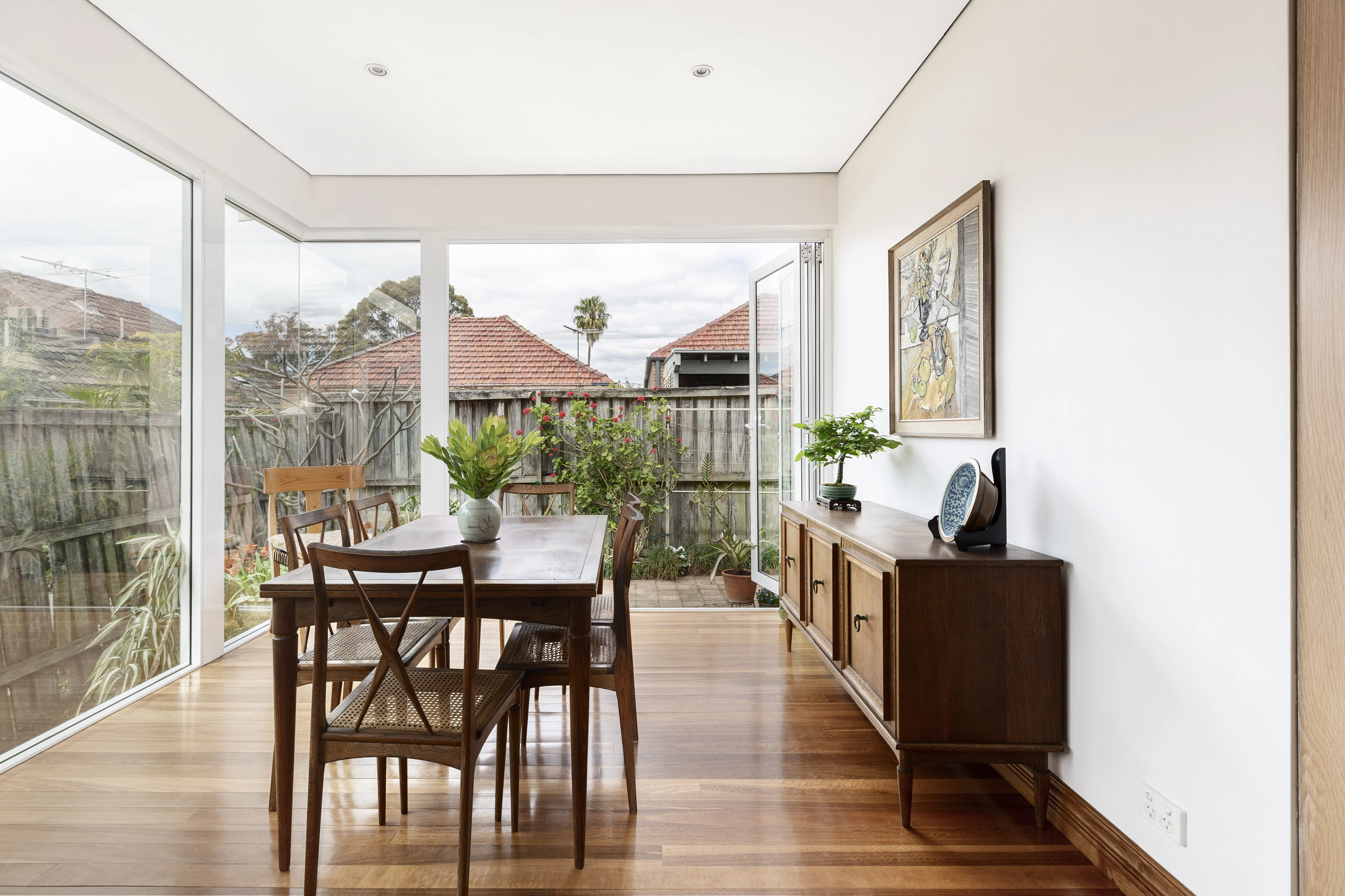 Warm natural timbers and impeccably maintained finishes create an inviting ambience in this redesigned character home. The open dining/kitchen feels like a floating glass pavilion spilling out to the courtyard garden. On the edge of Annandale, it’s less than 10 minutes walk to either Norton Street or Booth Street shops and transport.