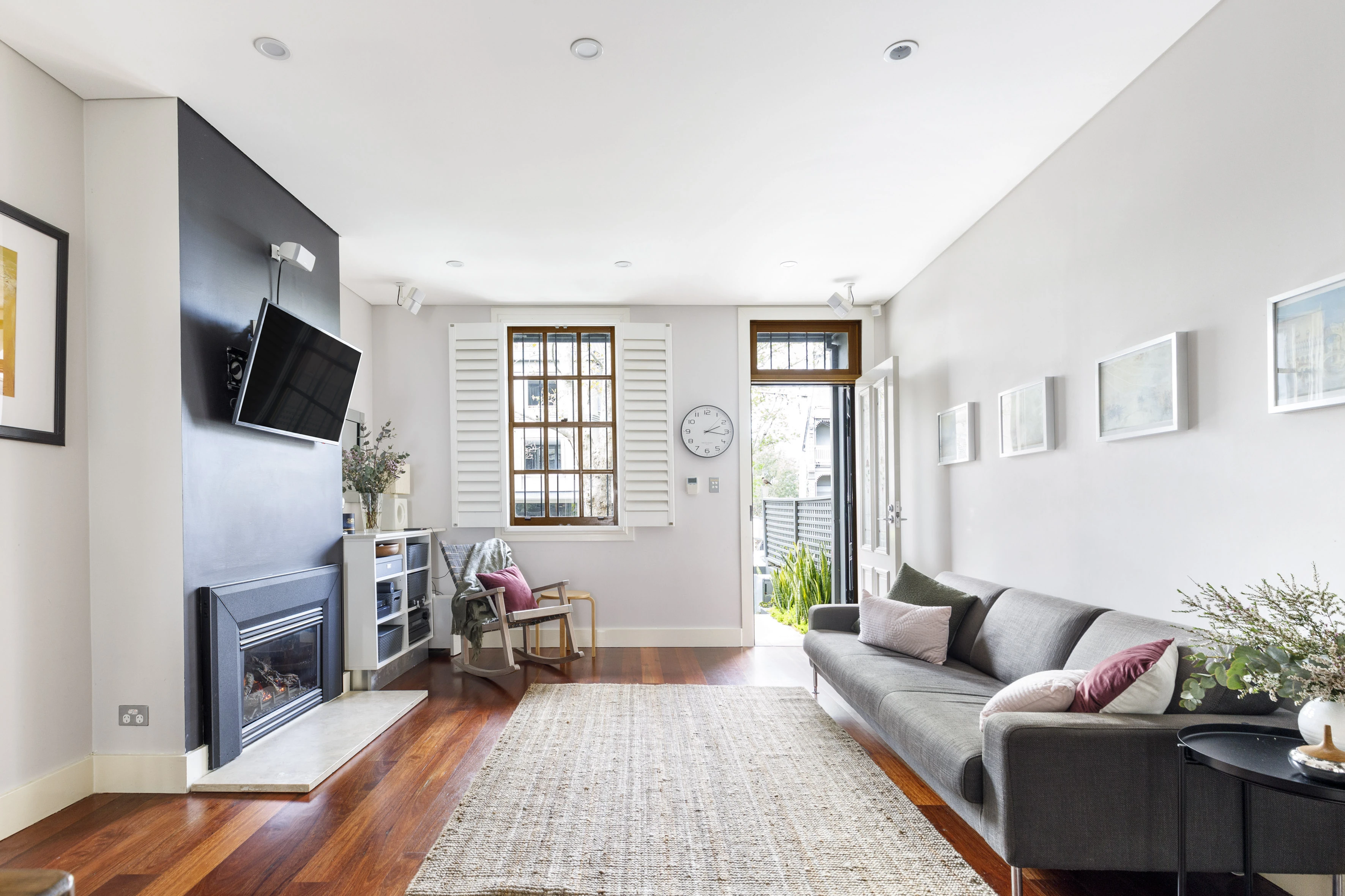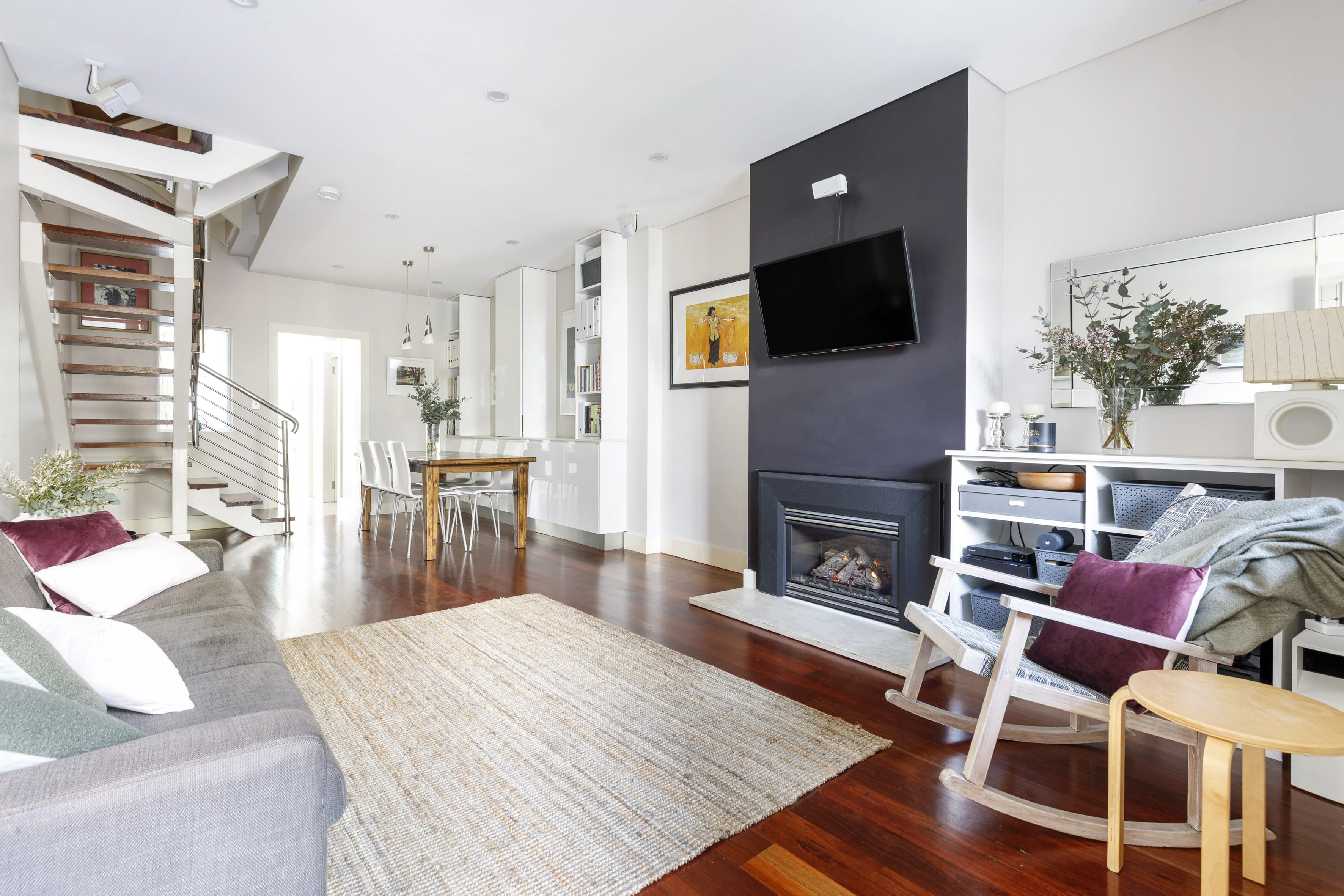 - Custom joinery, contemporary fireplace