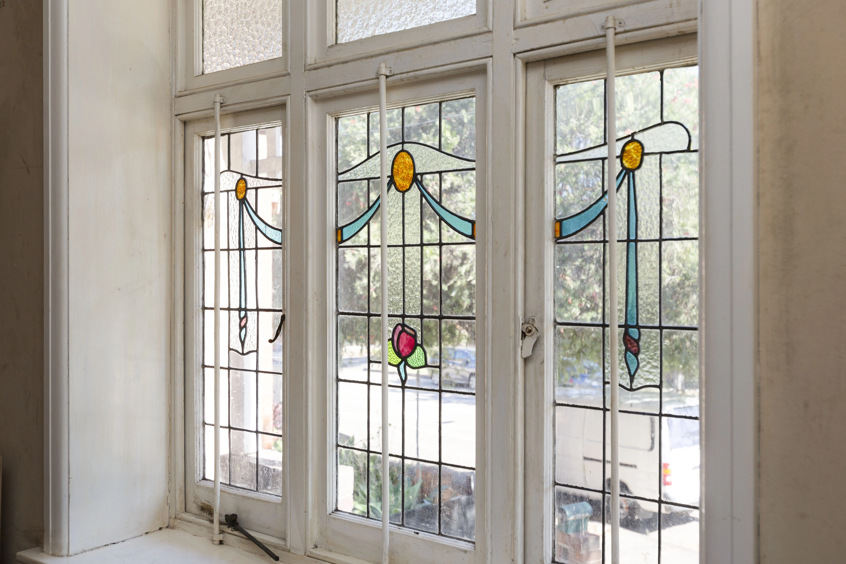 - Elevated from street, leadlight windows