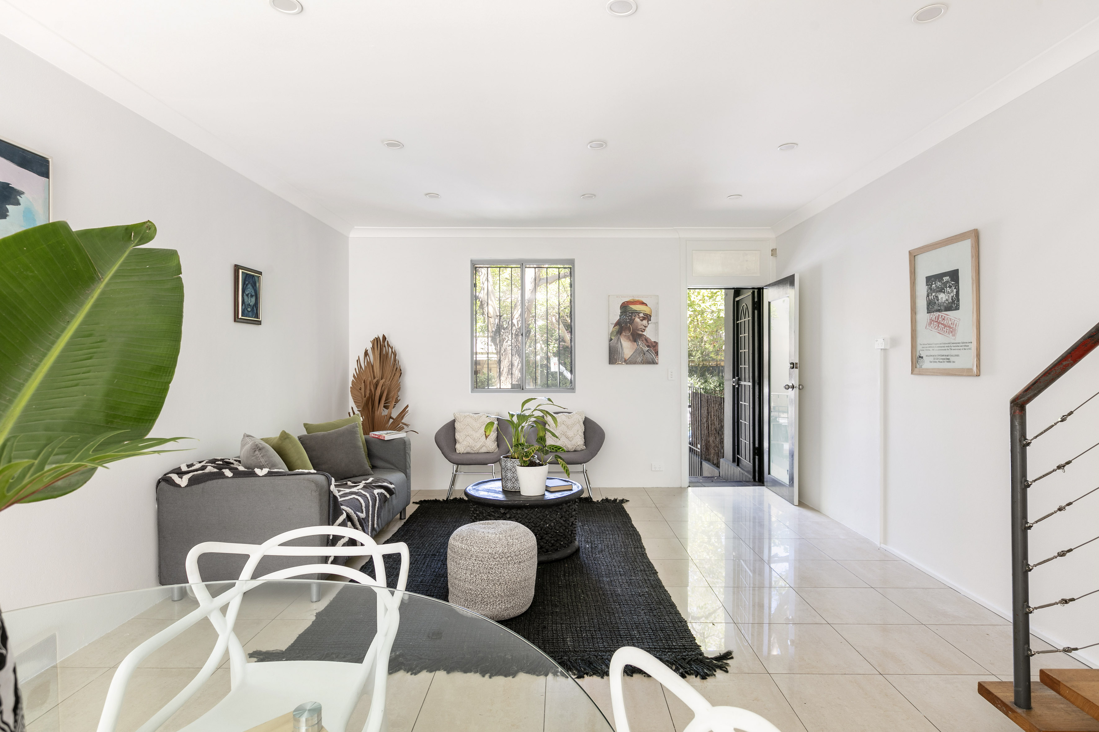 - Floating staircase, timber & tile floors