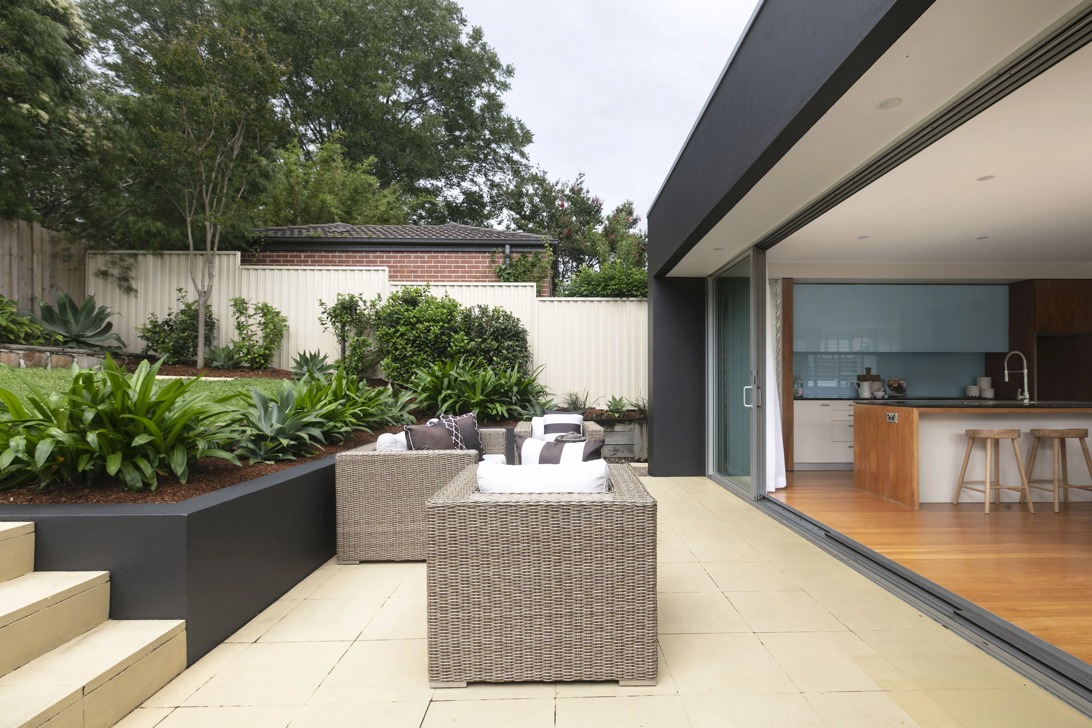 - Flow to entertainer’s patio & gardens