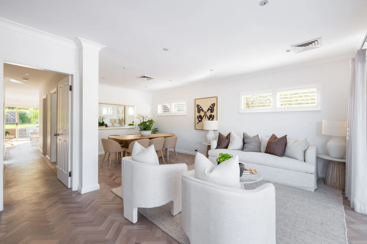 - Herringbone floorboards, ducted air con