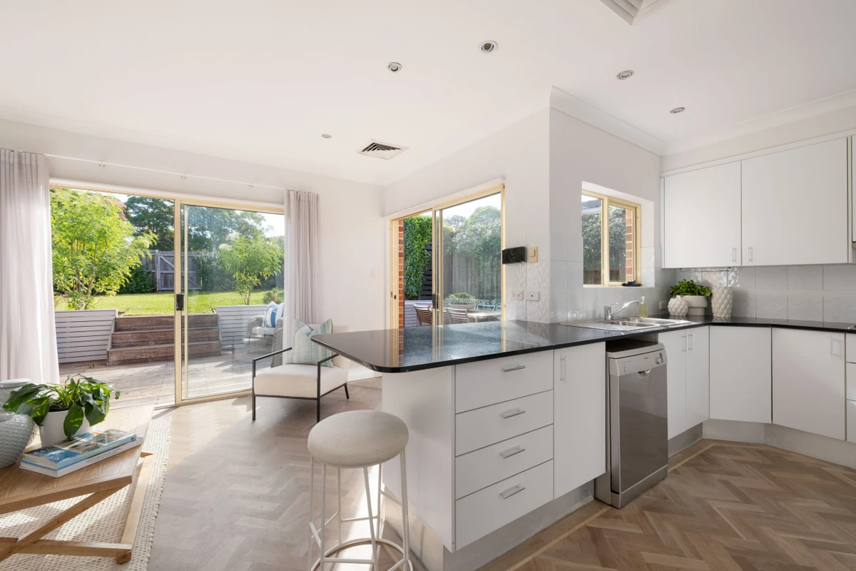 A comfortable and well-appointed double-brickhome with unattached north side and plenty of natural light throughout. The family-scaled floorplan includes a ground-level master suite with three more bedrooms and main bath upstairs. Separate formal and casual living spaces at the front and rear of the house both connect to outdoor space, for a choice of entertaining options and flexibility for busy family life. The generous lawn and hedged surrounds make a verdant and private backdrop in a convenient location, so close to St Joseph’s and Villa Maria schools, Hunters Hill village shops, cafés, waterfront parks and city bus.
