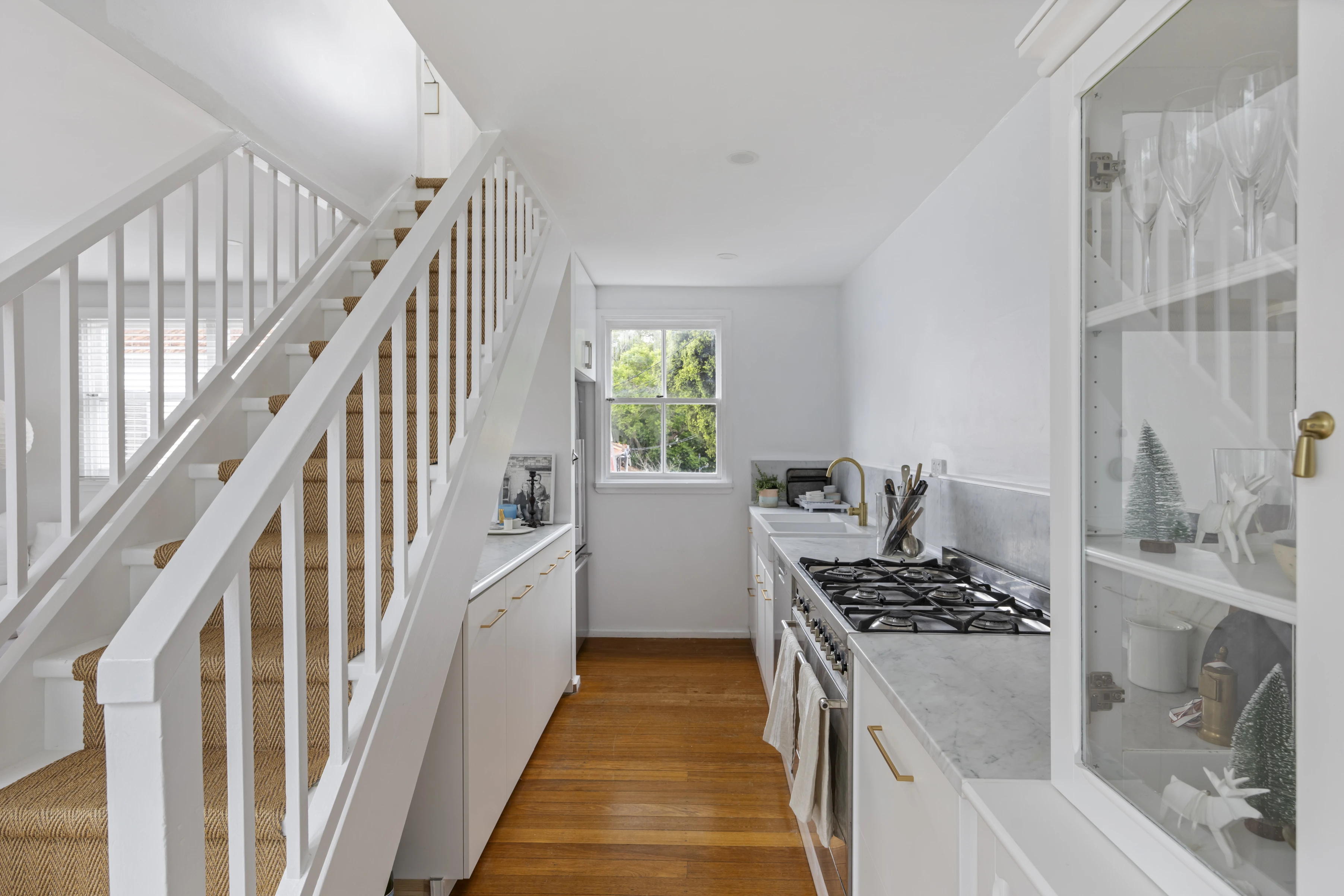 The mindful renovation of one of Paddington's few remaining weatherboard cottages has created a sun-filled sanctuary without sacrificing its authentic period charm. The freestanding home takes full advantage of its northerly aspect with a Mediterranean-inspired internal deck and rooftop terrace for relaxing in the sunshine or dining under the stars. Built in the early 1900s, the focus of the redesign highlights functionality, light and an honest expression of materials with feel-good interiors complemented by finishes in Carrara marble, aged brass and timber. A perfect escape from the fast pace of city living let reassuringly close to both Paddington and Woollahra villages, the two-storey home is surrounded by cafes and galleries on a sunny corner block just 500m across the park to Edgecliff station and 700m to Five Ways' neighbourhood hub.