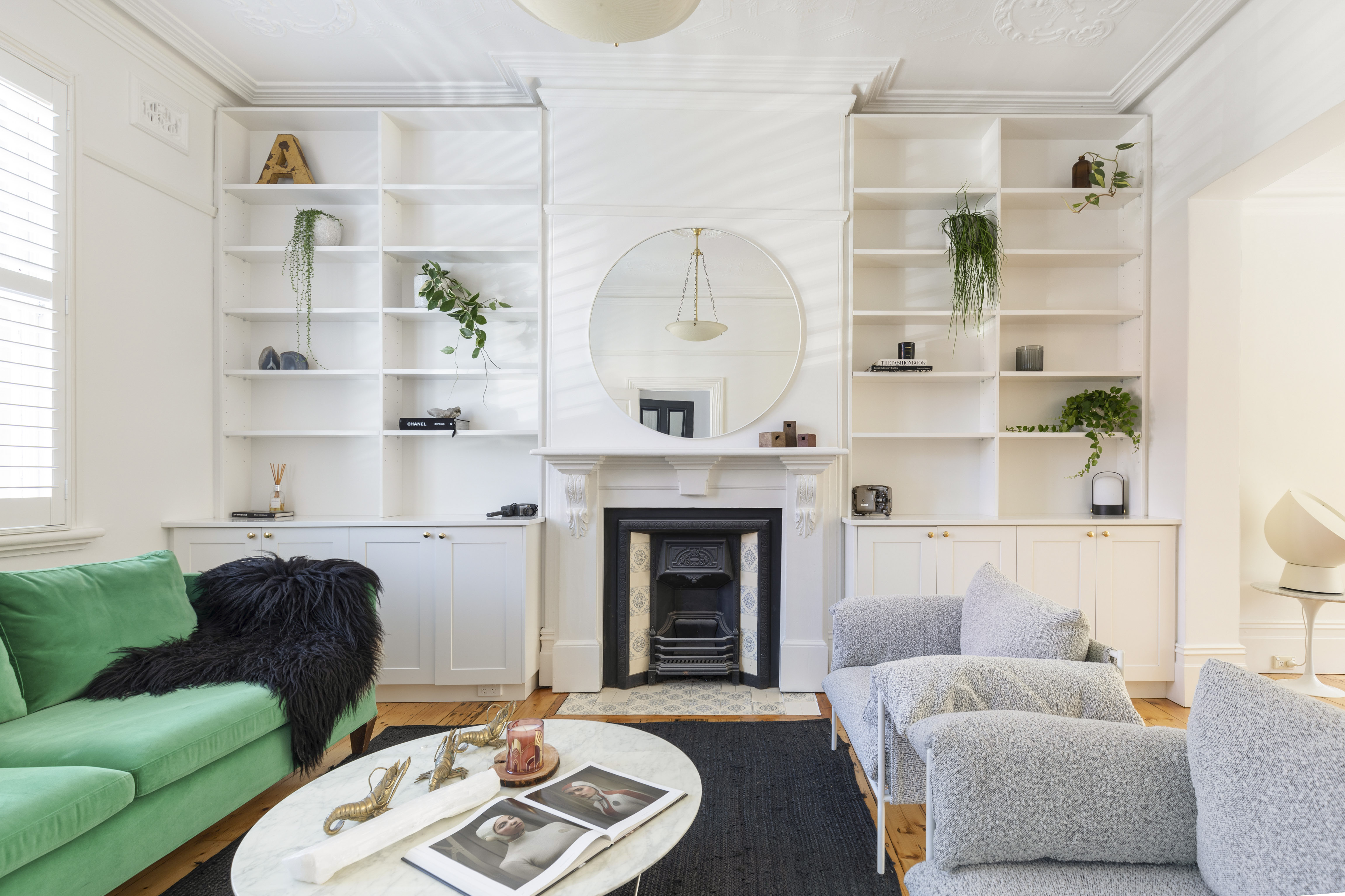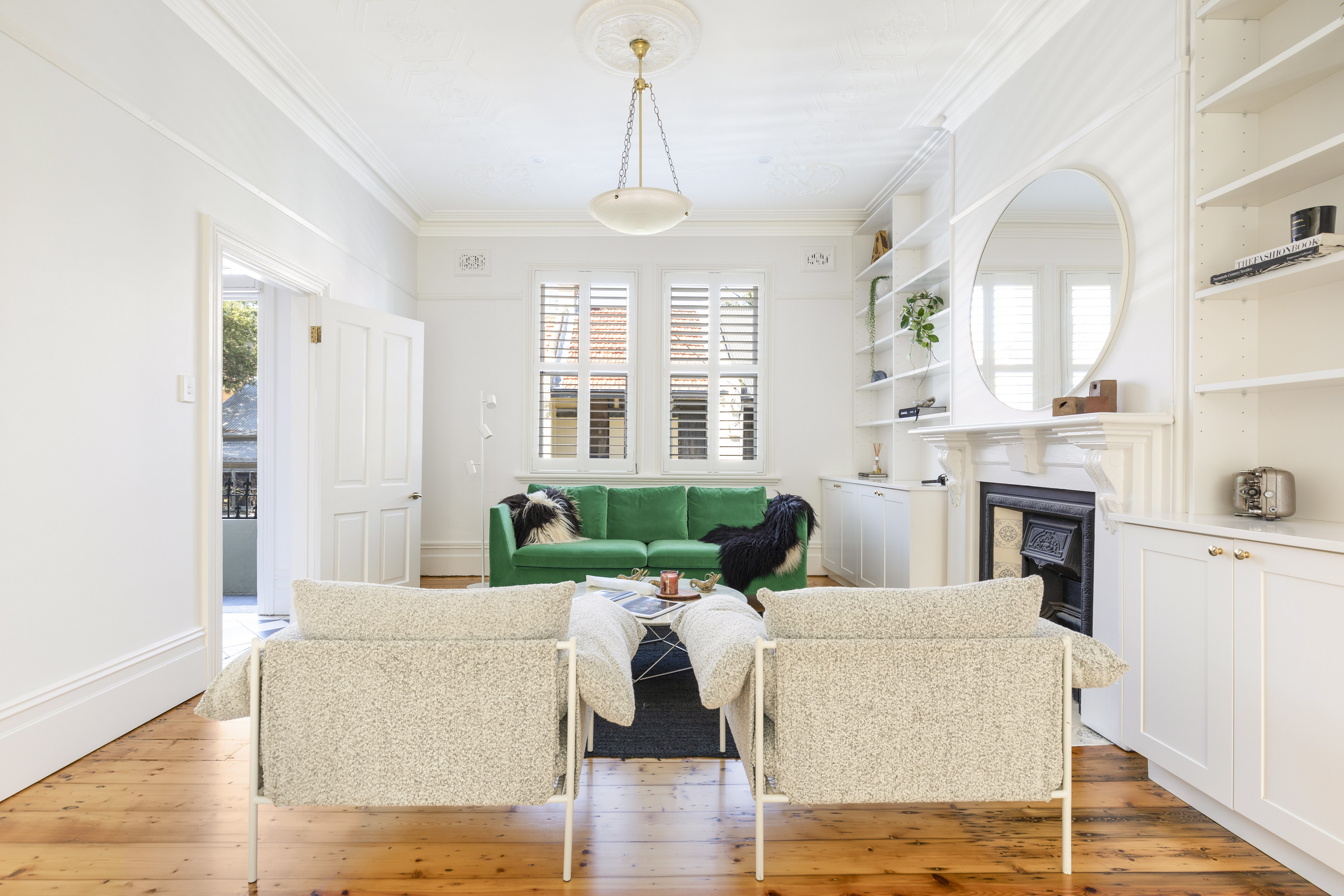 - Fresh white paint, refinished floorboards