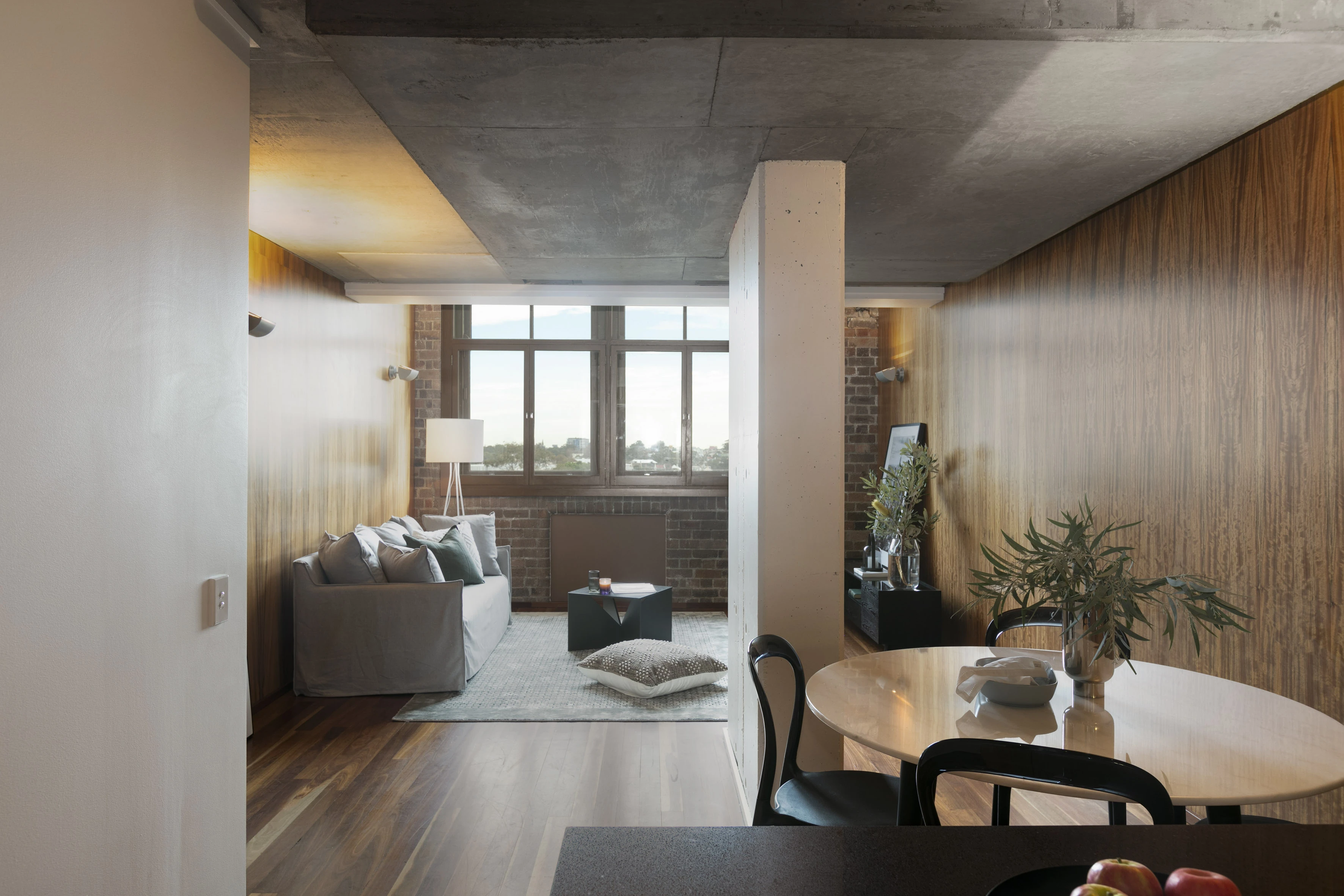 In the prestigious M Central warehouse, this apartment is an oversized split-level design. With wood-panelled walls & exposed concrete, it’s unspoilt throughout.