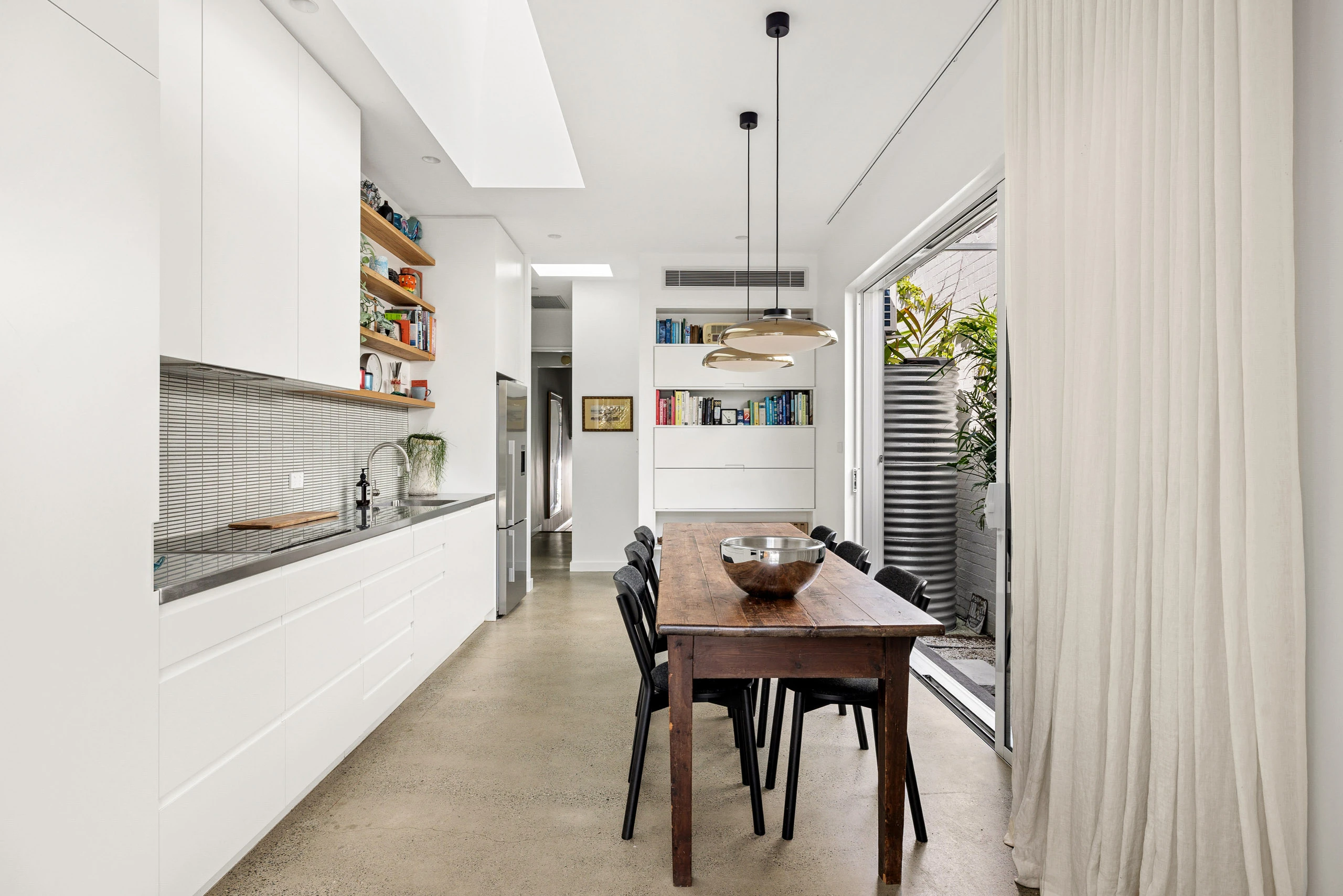 Set in a leafy streetscape opposite Bain Playground, this residence has been extensively developed to bring finely crafted comfort, flow and functionality to every inch of space. Making the most of its dual-access block, there is a rear studio with private entry from Salisbury Lane – perfect as a well-separated third bedroom or guest accommodation. The main house is well laid out over a single level plus a versatile attic retreat/study. The skylit kitchen/dining opens to a central courtyard, while the overheight living space connects to the back garden and captures wonderful north light. Close to Weekley Park, Percival Road village, Stanmore Public School, St. Michael’s Catholic Primary School and the train station, it’s also in easy reach of Parramatta Road, Camperdown, Leichhardt and Annandale hubs.