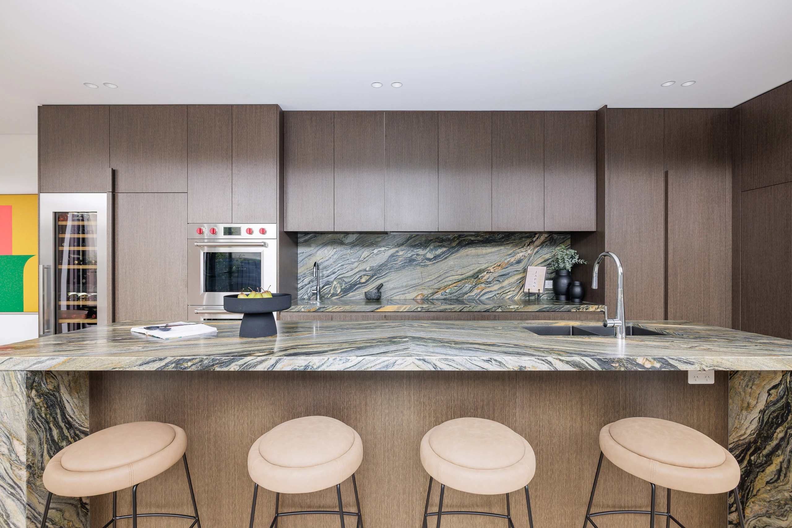 - Quartzite kitchen with double Wolf oven