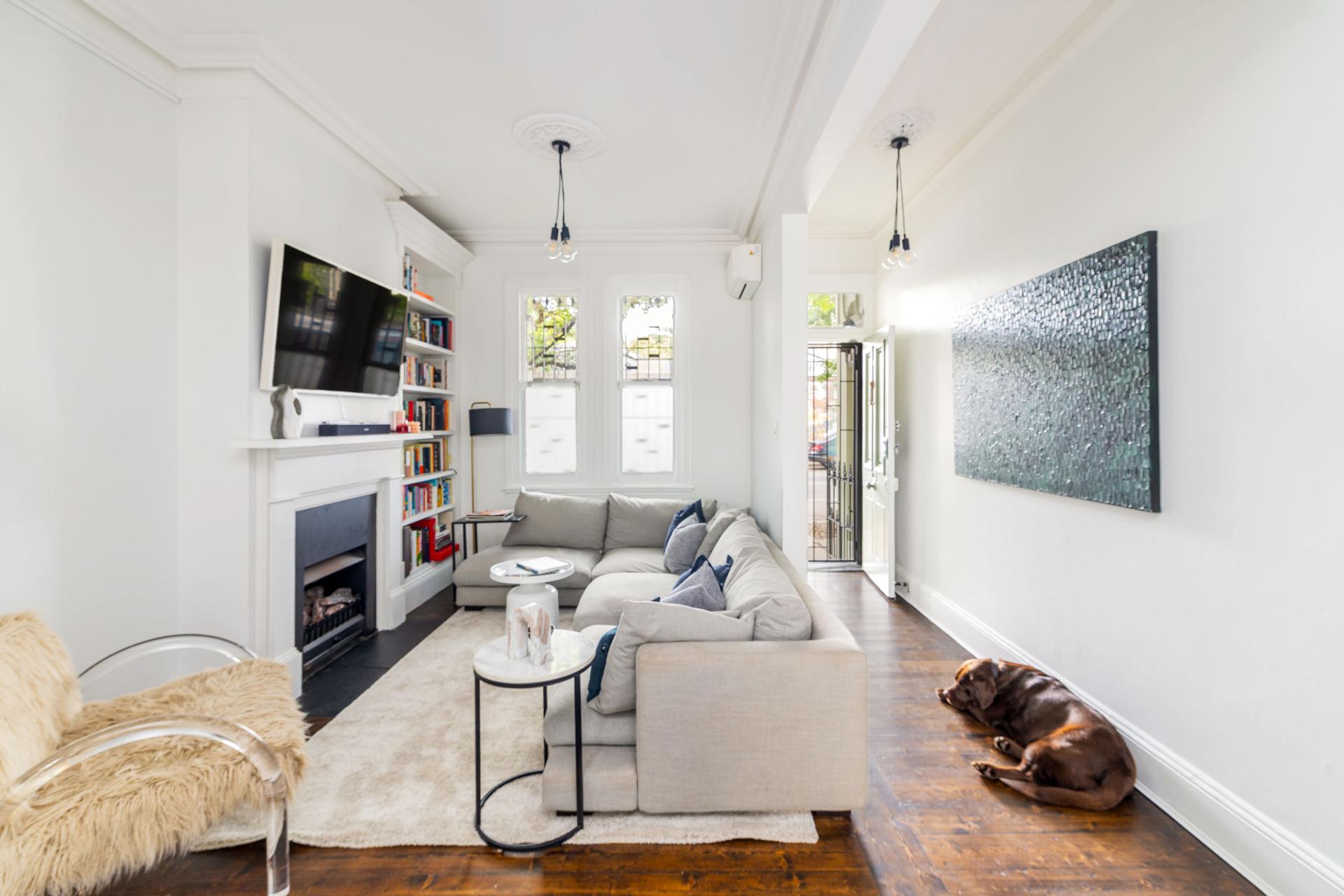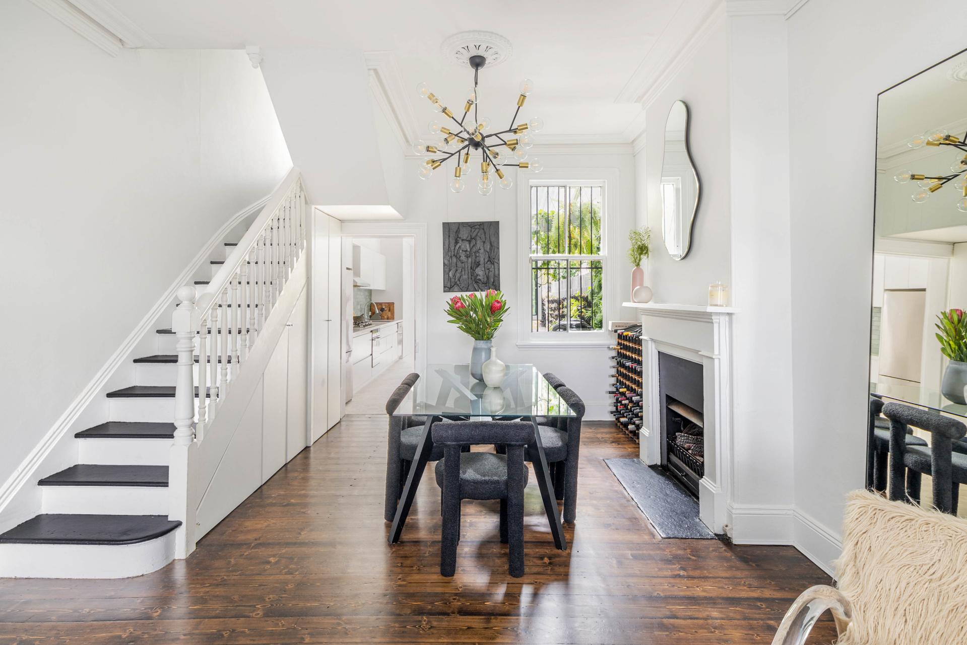 In an elegant, tree-lined terrace row, this beautifully renovated home is moments to the rejuvenated Surry Hills village with its new dining precinct, grocers and supermarkets. A soulful mix of fine Victorian details and clean-lined updates, with polished floorboards and ornate ceilings, it makes a move-in ready city residence offering outstanding lifestyle and convenience, on the edge of a thriving urban village.