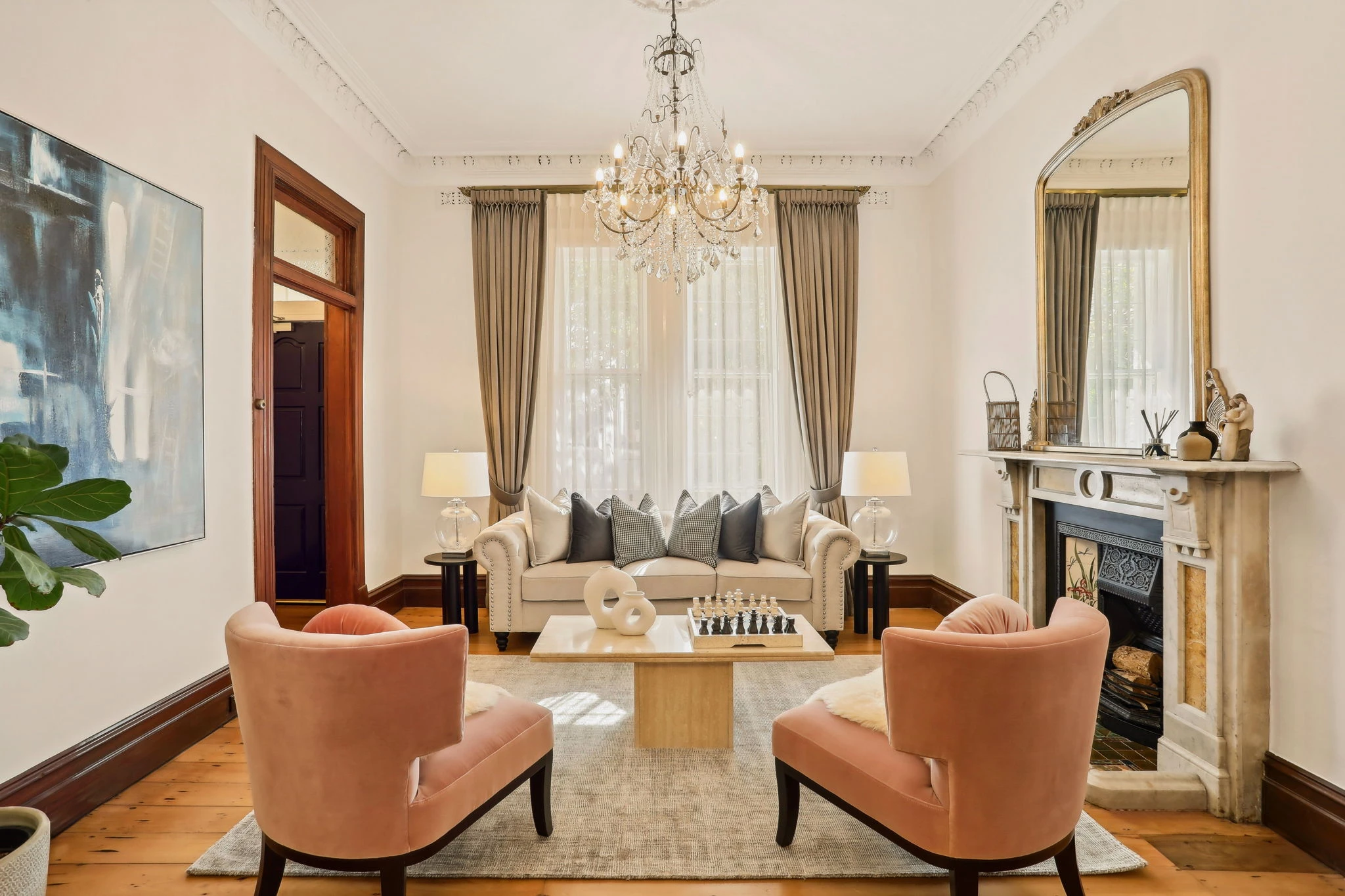 - Newly sanded and polished timber floors, soaring ornate ceilings