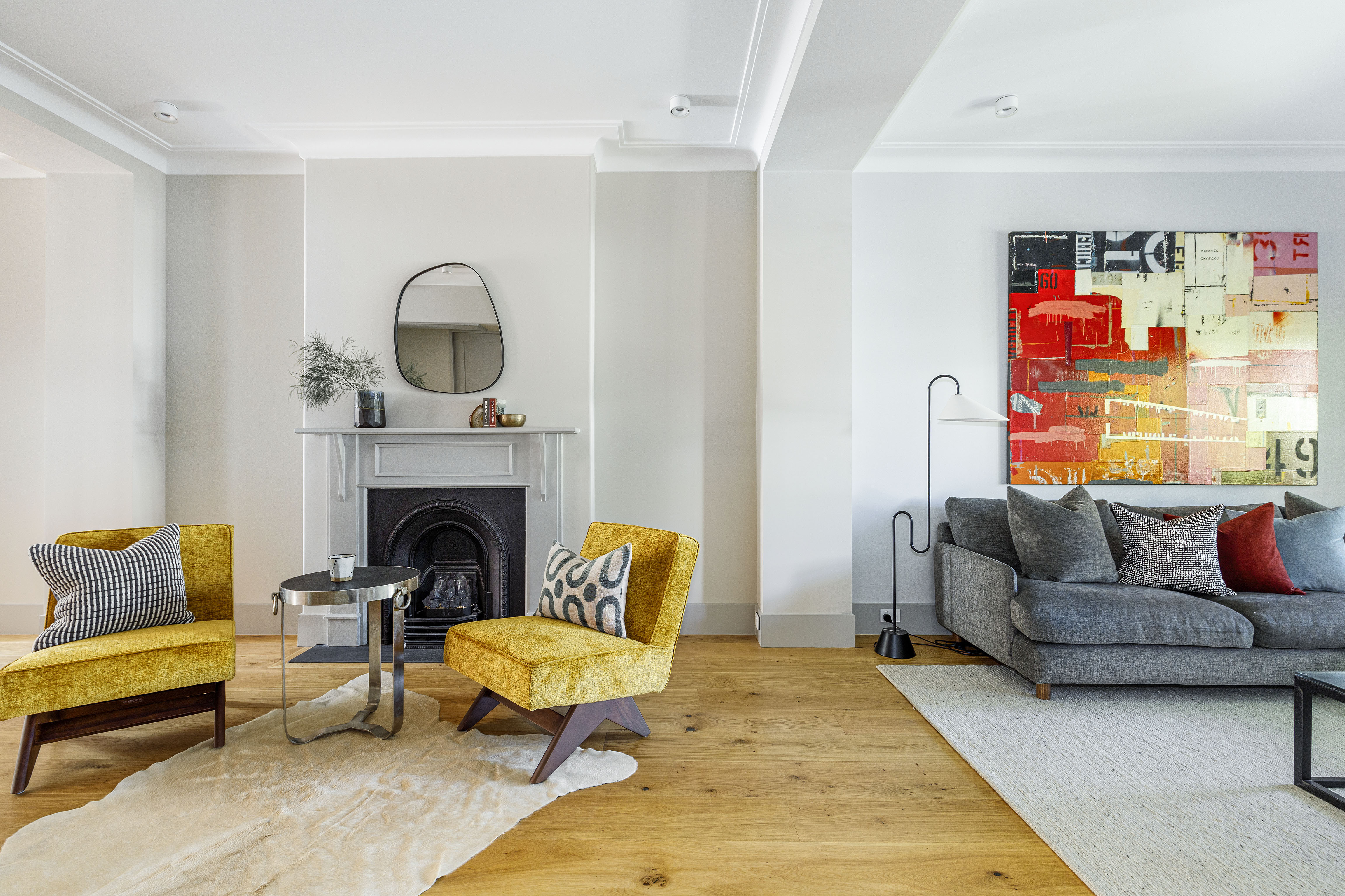- Oak floors, high ceilings, modern style