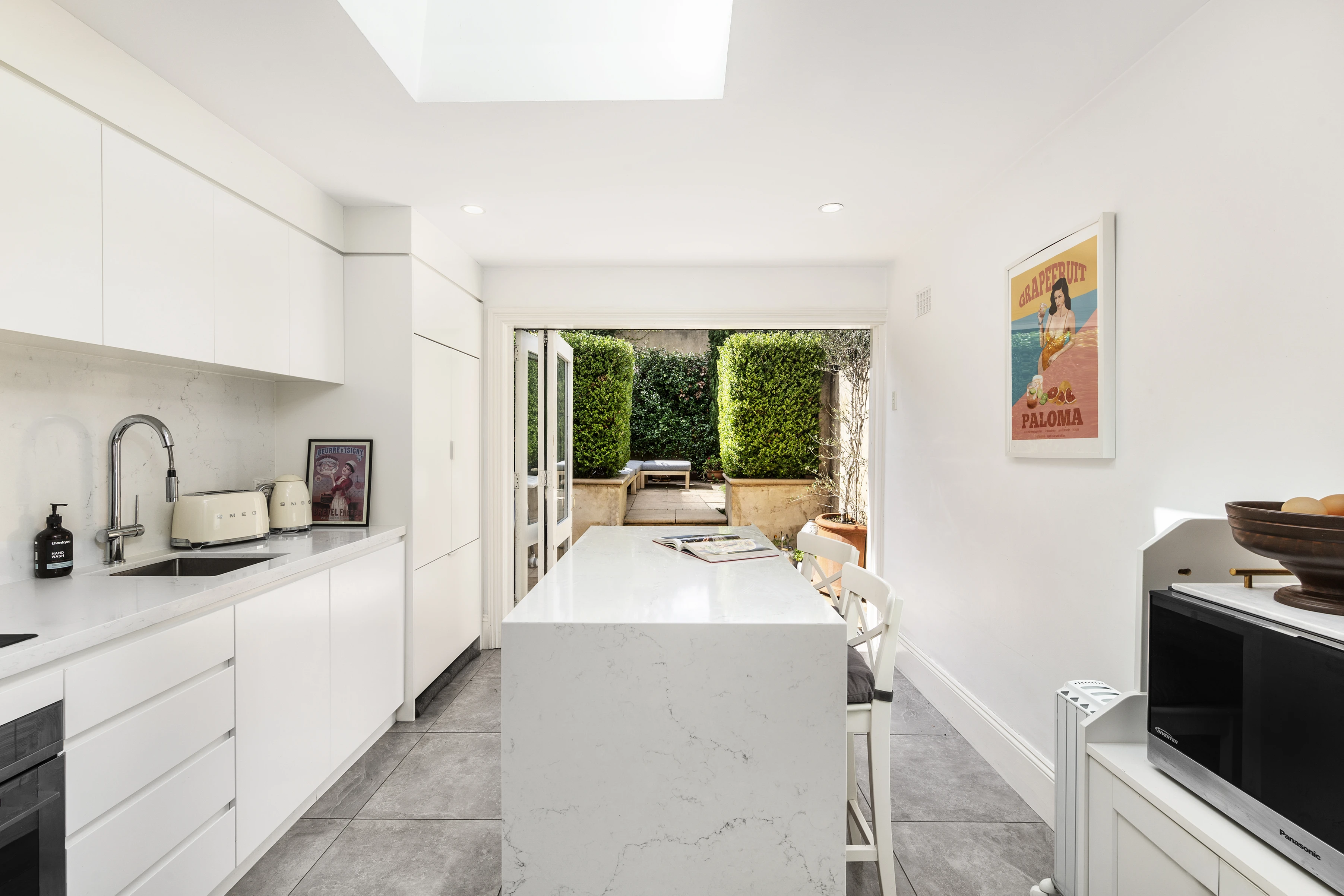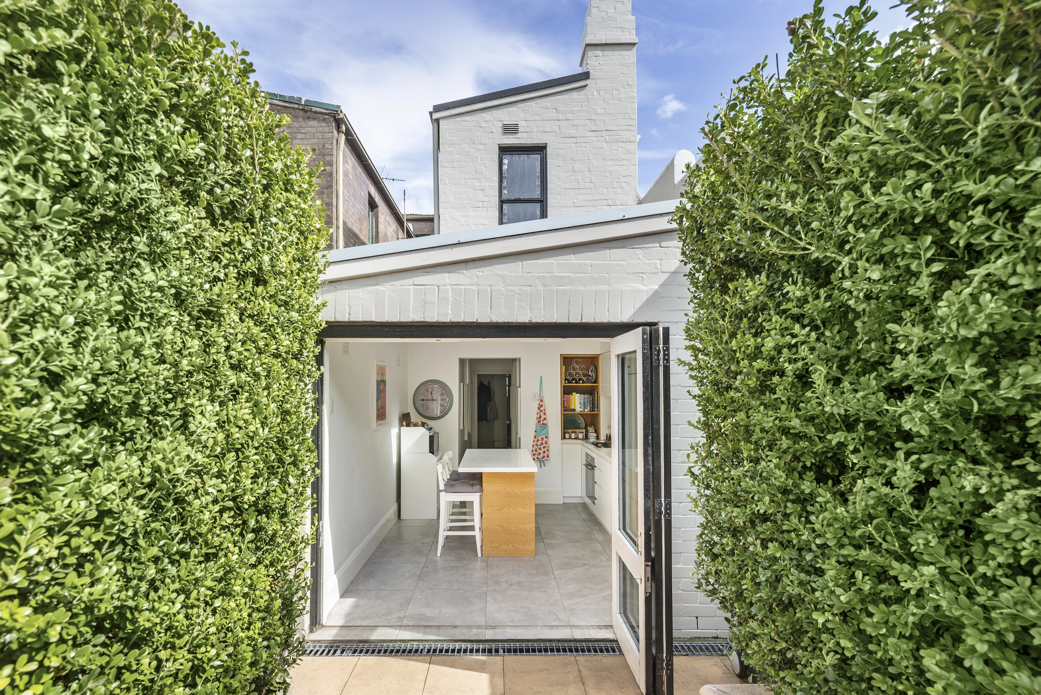 In a quiet one-way enclave, wrapped in green hedges and French Provincial themes, this feels more like an oasis than inner-city Redfern. With indoor/outdoor elements on a deep garden block, it's tucked away just off some of the area's best dining.